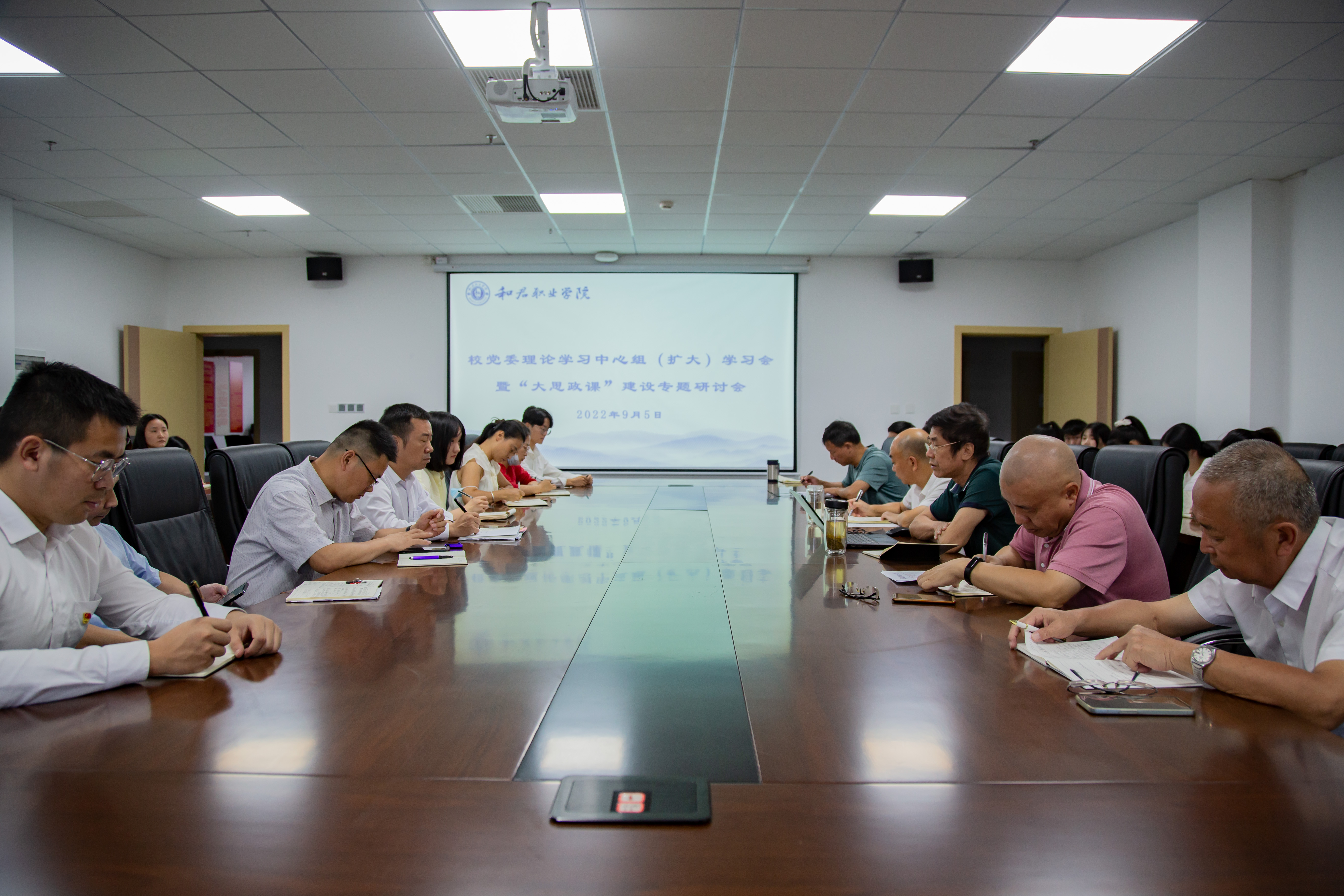 9月5日下午,彩神xl党委在综合楼607会议室召开了党委理论学习中心组(扩大)学习会暨 “大思政课”建设专题研讨会。党委书记王德平主持会议,校党委委员、党政办、教务处负责人、学工处全体人员、思政课全体教师参会🏋️。