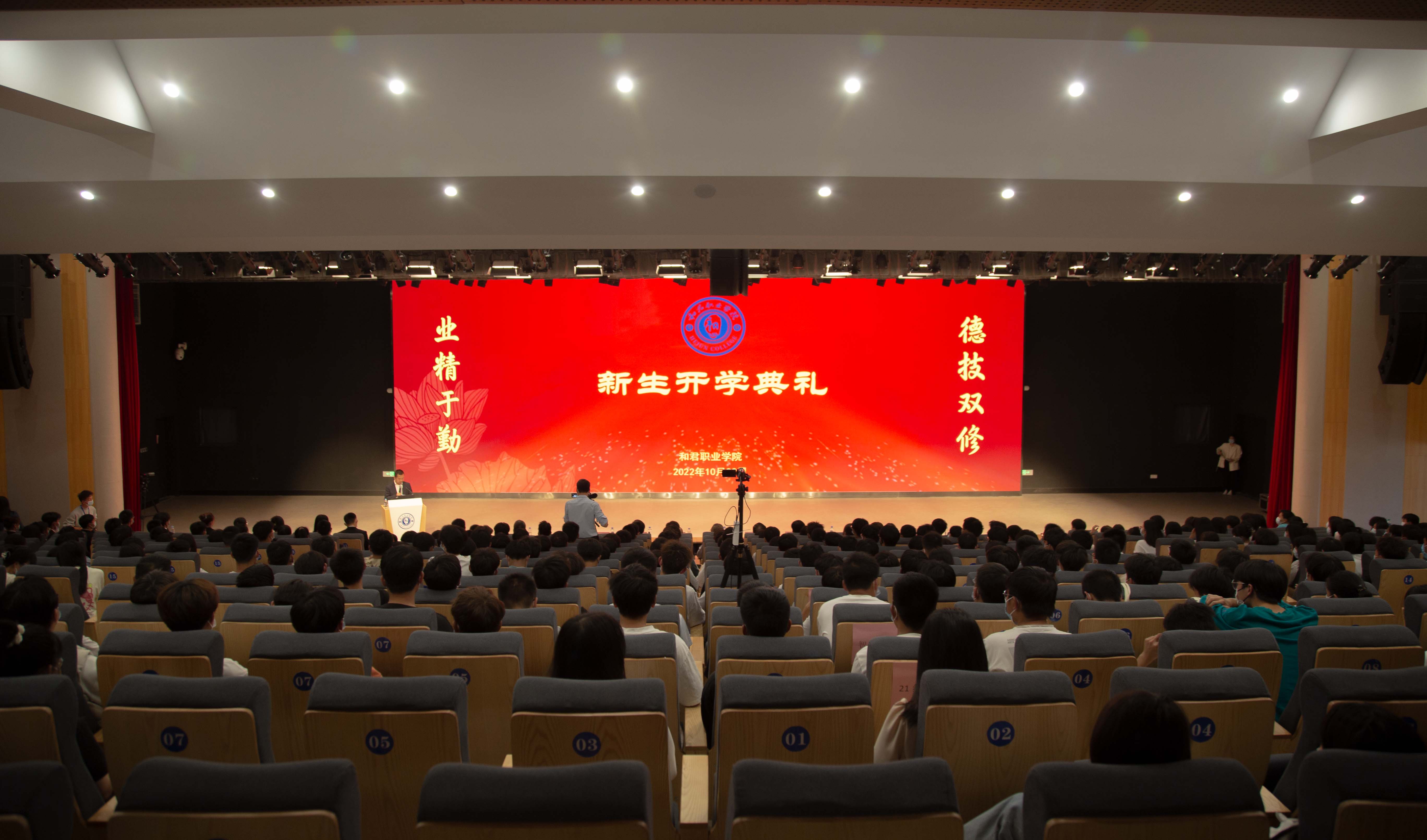 10月22日下午🤌🏻🔛,我校2022级新生开学典礼在综合楼大学礼堂举行。董事长王明夫、党委书记王德平、校长赖章盛◾️、党委副书记、执行校长李兴等领导出席典礼,全体教职工及2022级全体新生参加典礼,学工处处长赵延兵主持典礼🤠。本次开学典礼以线上线下相结合的形式,通过视频直播同步进行。