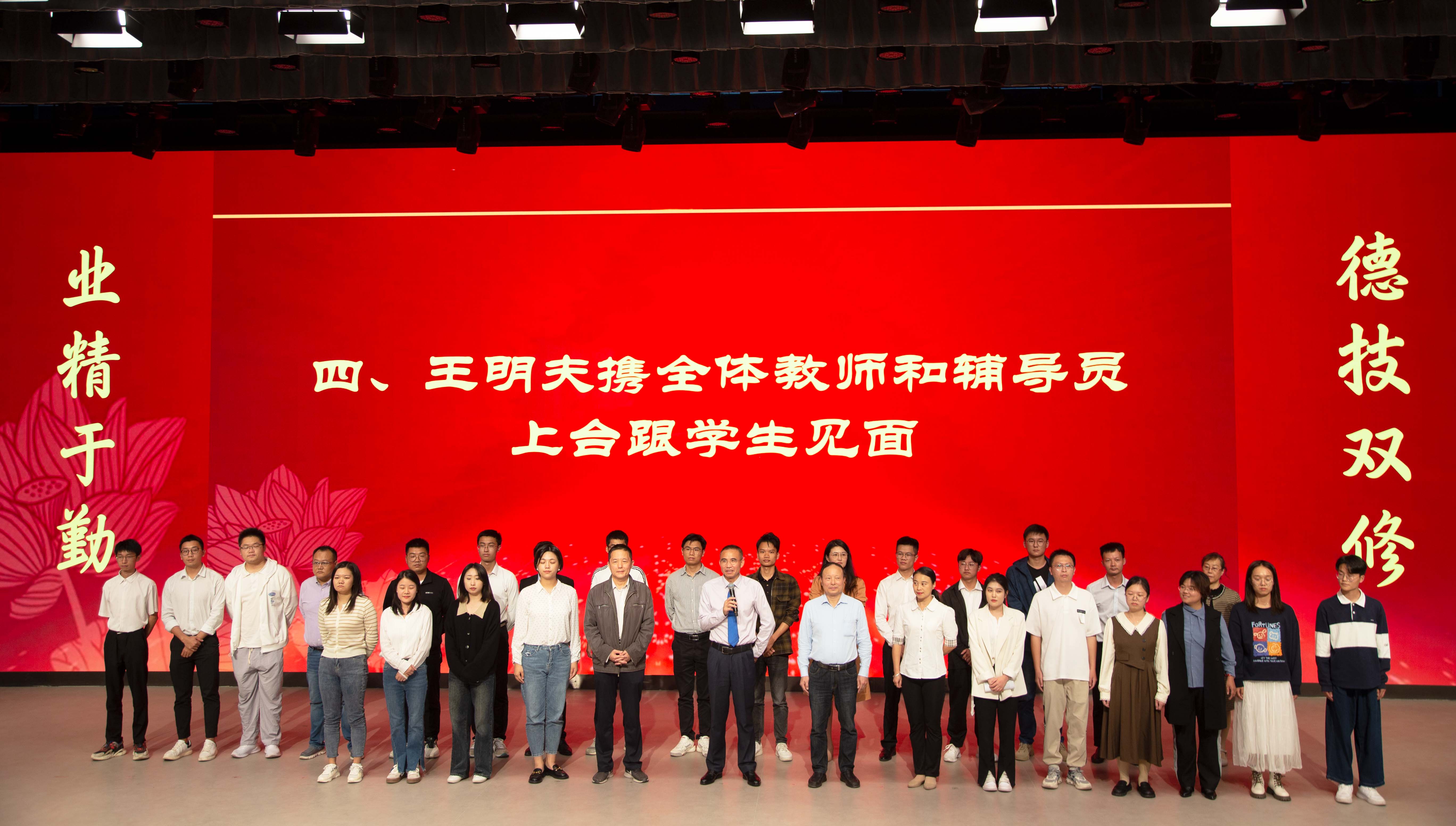 王明夫携教师代表、辅导员代表上台与学生见面🦔,并为学生送上祝福5️⃣🕚。