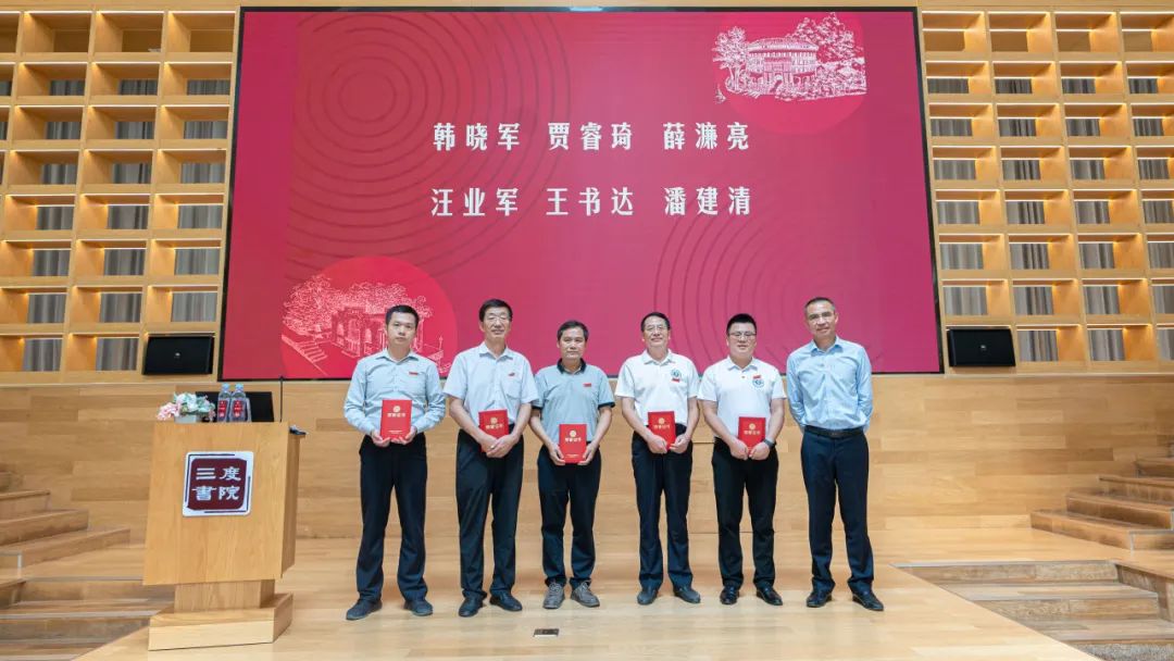 从左至右依次为:薛濂亮、王书达、潘建清、汪业军、韩晓军及颁奖人——理事长王明夫。(贾睿琦因事未到)