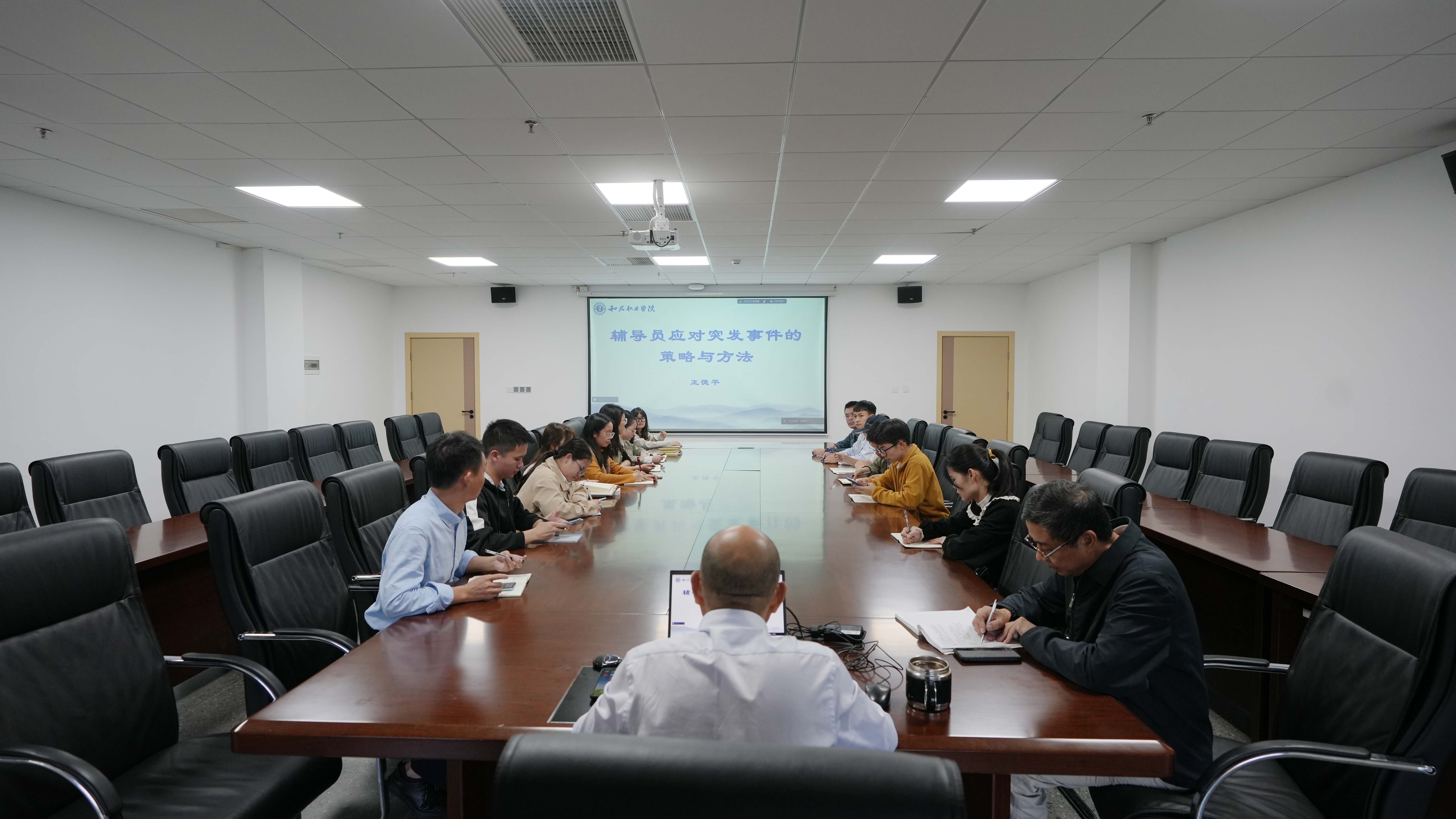 为进一步加强学校辅导员队伍的建设,进一步提升他们的政治意识和处理校园突发事件、应对舆情信息的能力,10月23日下午,我校组织了辅导员应对突发事件的策略与方法专题培训暨学习贯彻习近平新时代中国特色社会主义思想教育座谈会🦹🏼。专题培训由党委书记王德平主讲,稀金产业学院的辅导员们通过线上参与了学习。