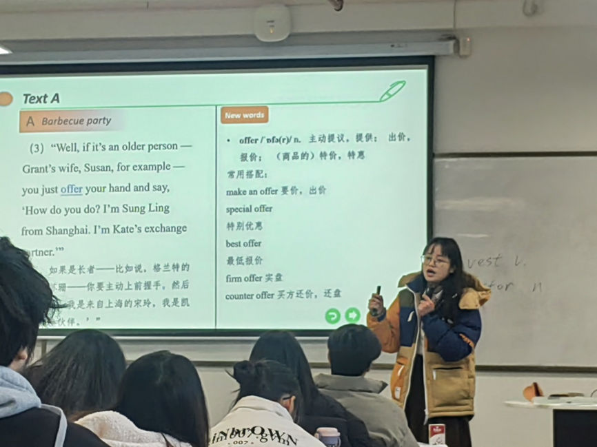 基础学部大学英语课程教师钟小燕向我们展示了一节精彩的英语课🚶🏻♀️。讲课前,钟小燕老师介绍为什么学英语、英语实用性以及英语语言学习内容。以熟练的教学方法和扎实有效的课堂训练💲,激发了学生的学习积极性,让学生在课堂中快乐学习,在讨论中提升认知。