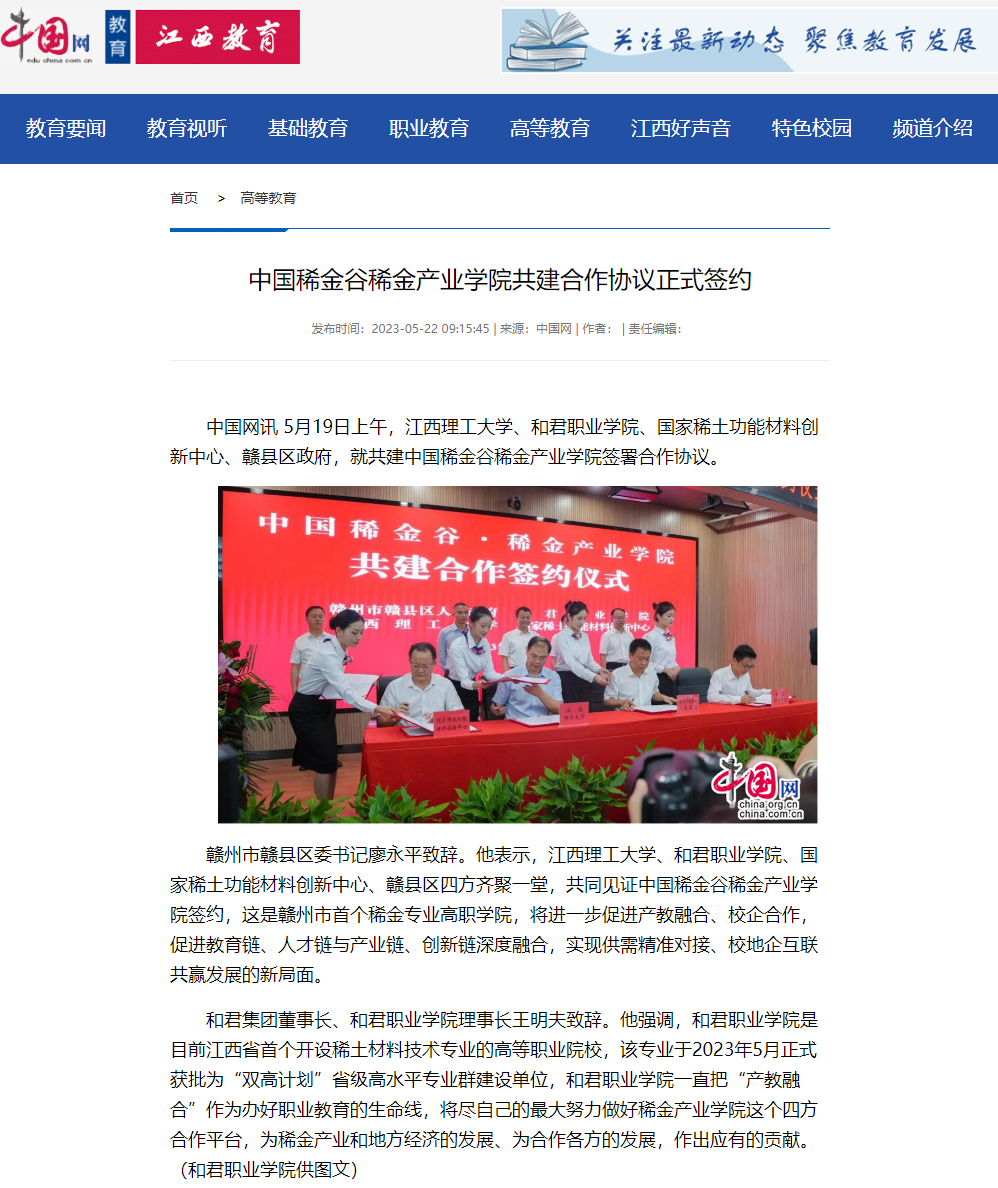 【中国网教育】中国稀金谷稀金产业学院共建合作协议正式签约