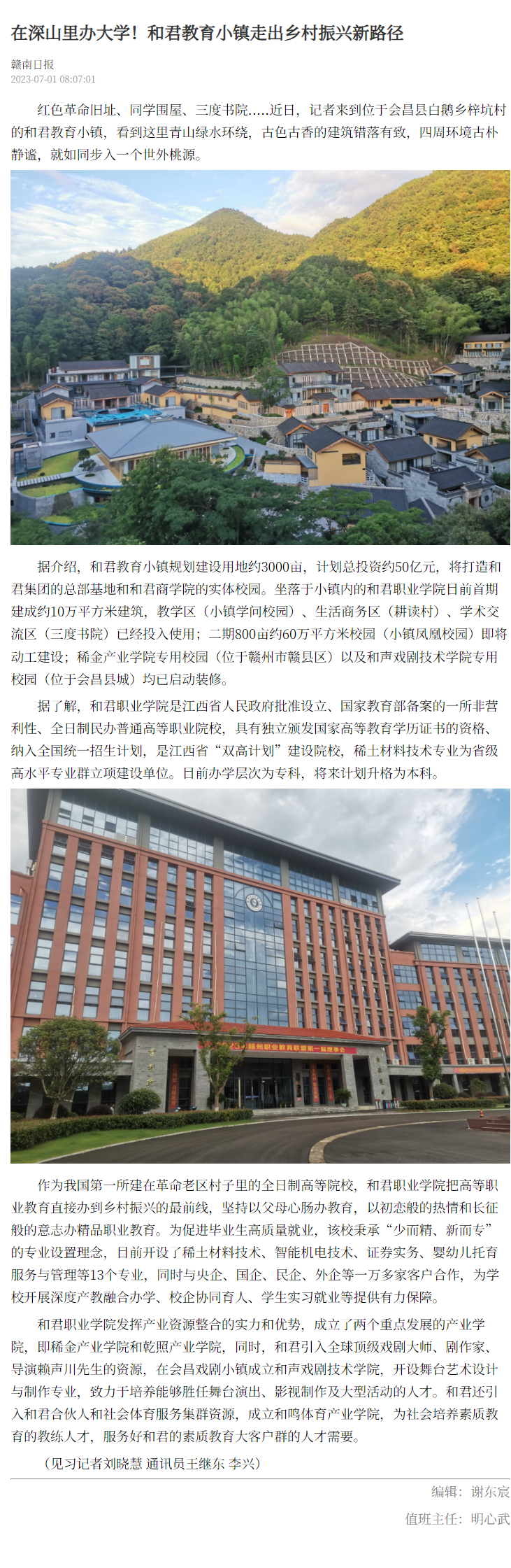 【赣南日报】在深山里办大学!和君教育小镇走出乡村振兴新路径