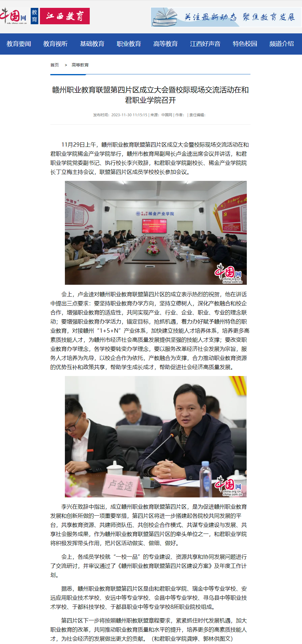 链接🔸🪈:赣州职业教育联盟第四片区成立大会暨校际现场交流活动在彩神xl召开