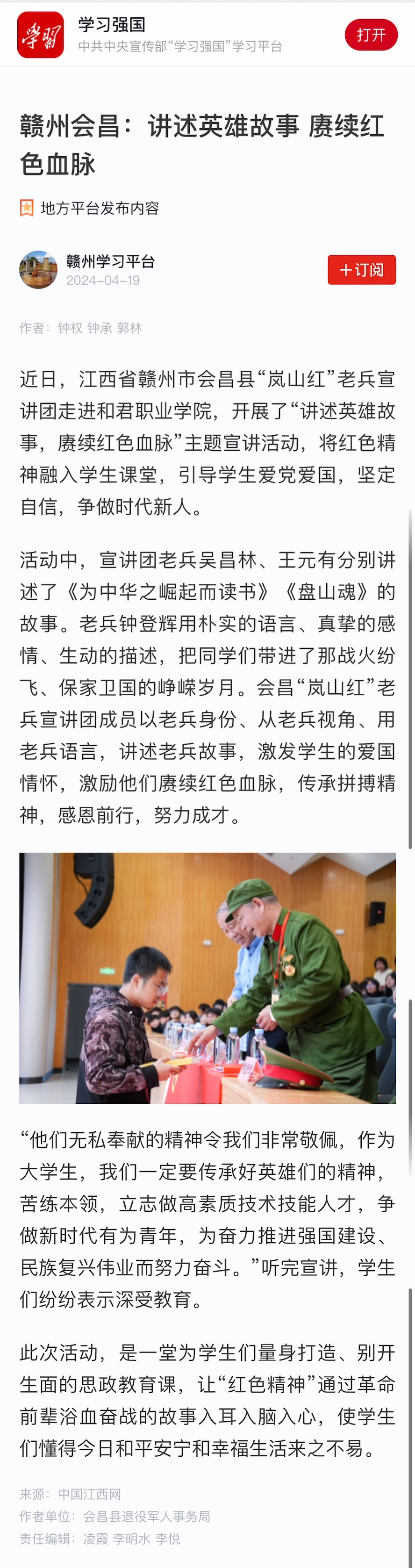 【赣州学习平台】赣州会昌🧕🏽:讲述英雄故事 赓续红色血脉
