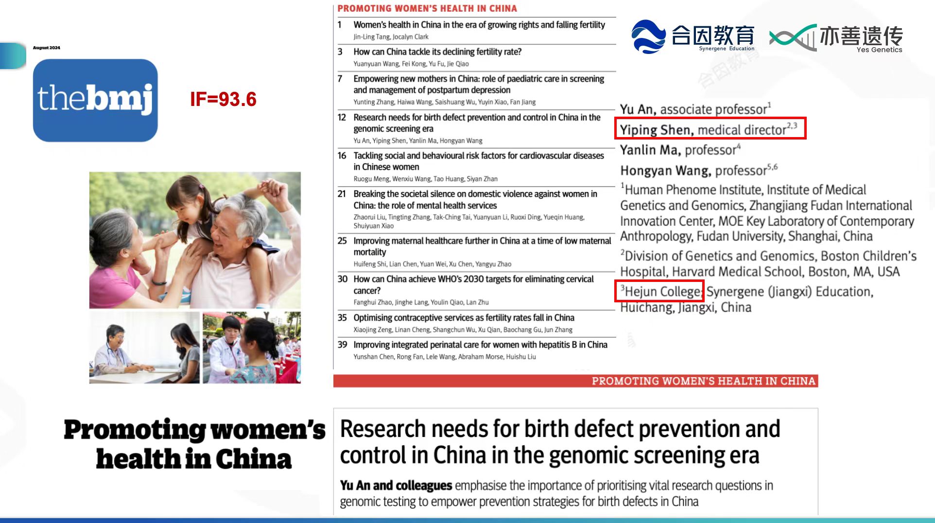 我校基因组医学与健康产业研究中心主任沈亦平教授在世界最具权威的医学期刊(英国医学期杂志The BMJ )上正式发表论文《基因组医学时代中国出生缺陷防控的研究要点》🕥,已受邀出席第十届女医师大会(8月30日—09月01日在北京国测国际会议会展中心隆重召开)和参与《THE BMJ中国女性健康促进专辑》全球首发仪式并做主旨演讲😻。