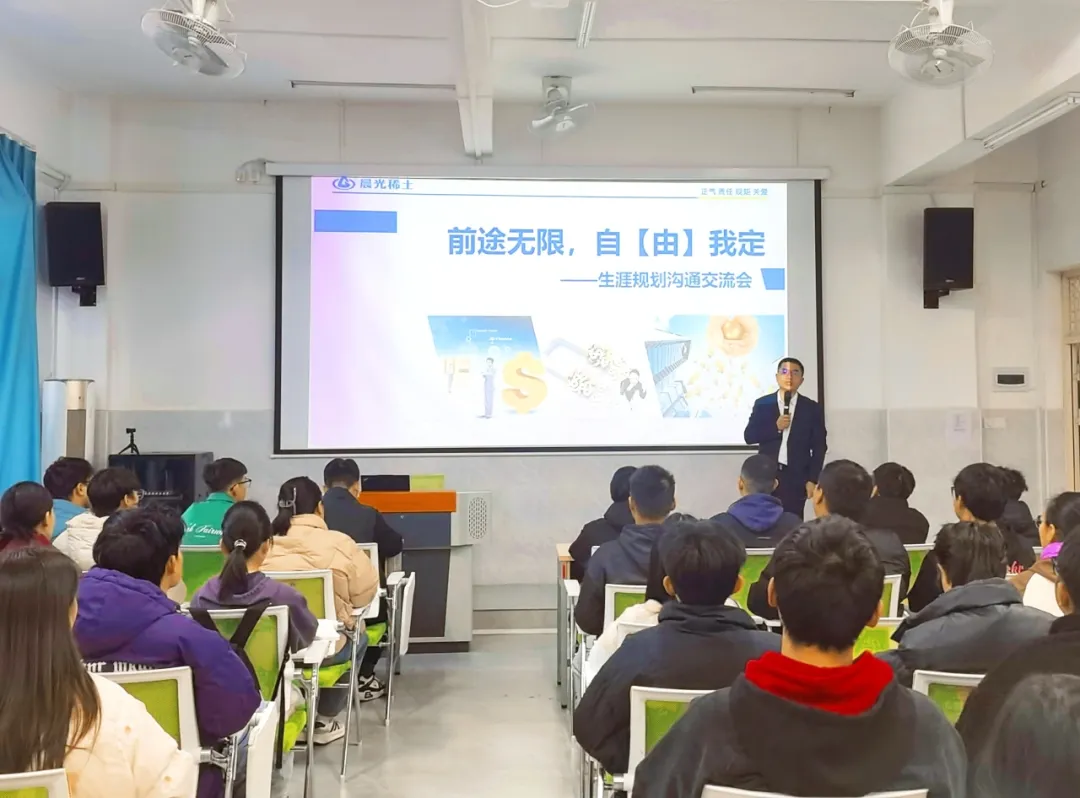为帮助学生正确认识职业生涯与职业发展⛎,增强自我认知与职业规划能力,明确就业方向👨‍🦼👧🏼,12月10日🚶🏻,我校稀金产业学院邀请赣州晨光稀土再生资源事业部人资经理林桐禄为2023级全体学生举办了一场以 “前途无限 自‘由’我定” 为题的职业生涯规划专题讲座🛌🏿🧎‍♀️‍➡️。