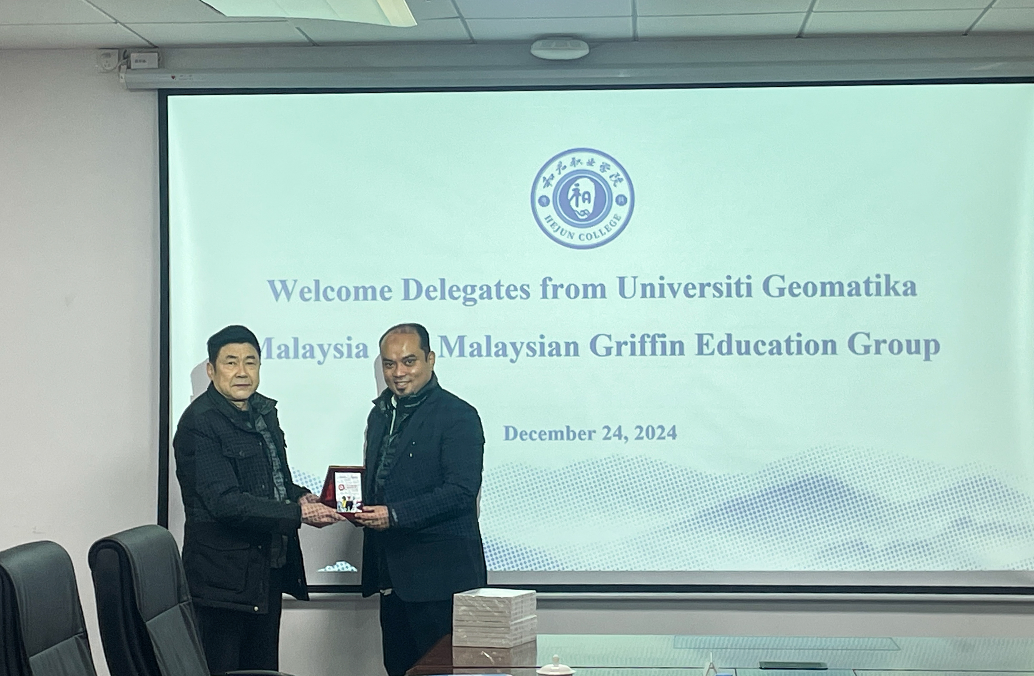12月24日,马来西亚测绘大学(Universiti Teknologi Malaysia)副校长Mazrin教授和马来西亚格里芬教育集团(Malaysian Griffin Education Group)执行董事林思明访问我校,理事长李兴💛↪️、校长赖章盛🦶🏽、副校长丁立梅以及相关职能部门负责人会见来宾,并就双方合作办学进行座谈交流🥌。