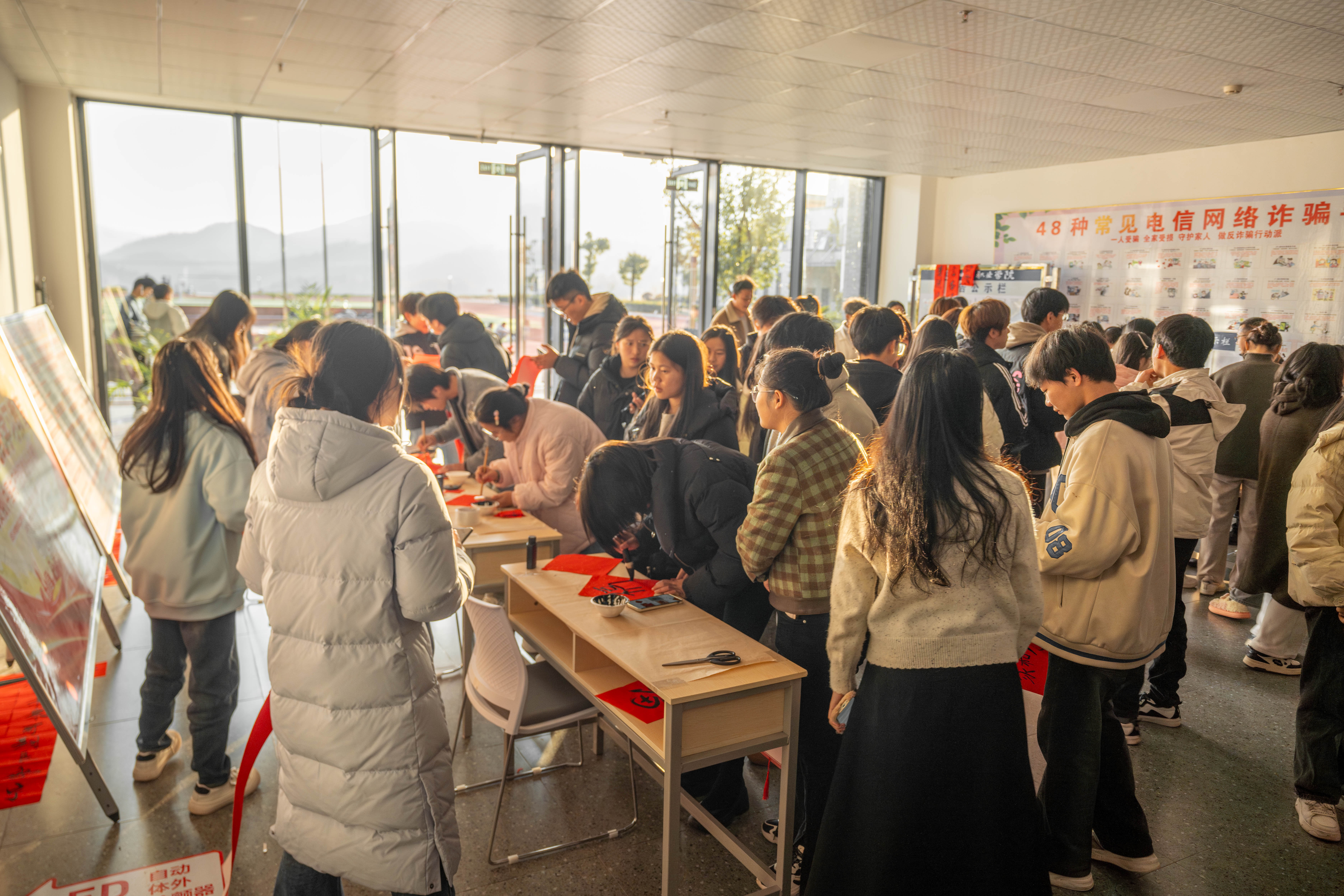 在新春佳节即将来临之际,为弘扬中华优秀传统文化🤴🏻,营造浓厚的节日氛围,1 月 6 日下午,我校稀金产业学院在综合楼大厅举办了首届 “笔墨传情,福满校园” 迎新春活动。