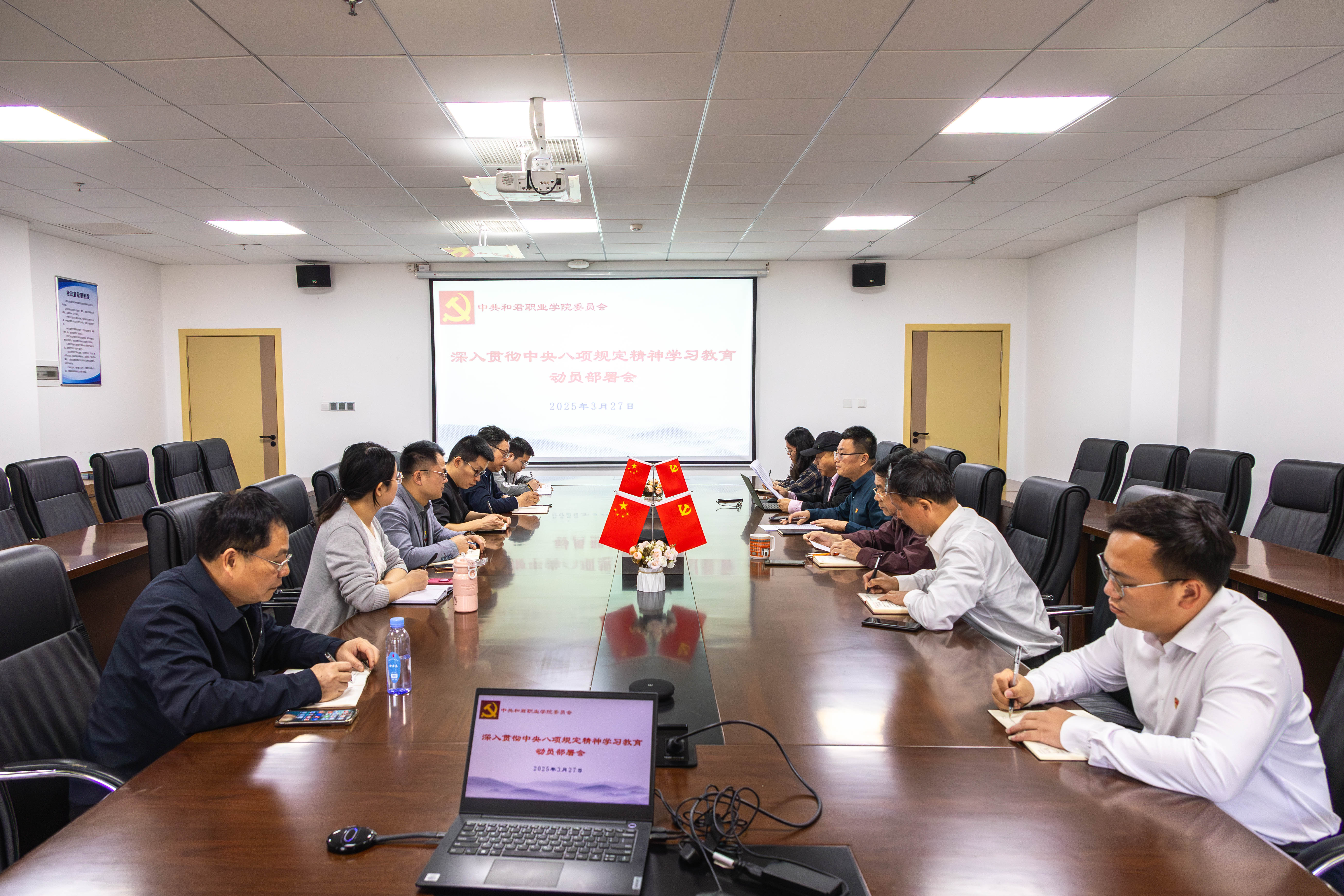3月27日上午,我校召开党委会启动部署深入贯彻中央八项规定精神学习教育。党委班子成员出席会议🖖🏿,各基层党组织书记及相关职能部门负责人参加🚣‍♀️,党委委员韩晓军主持。