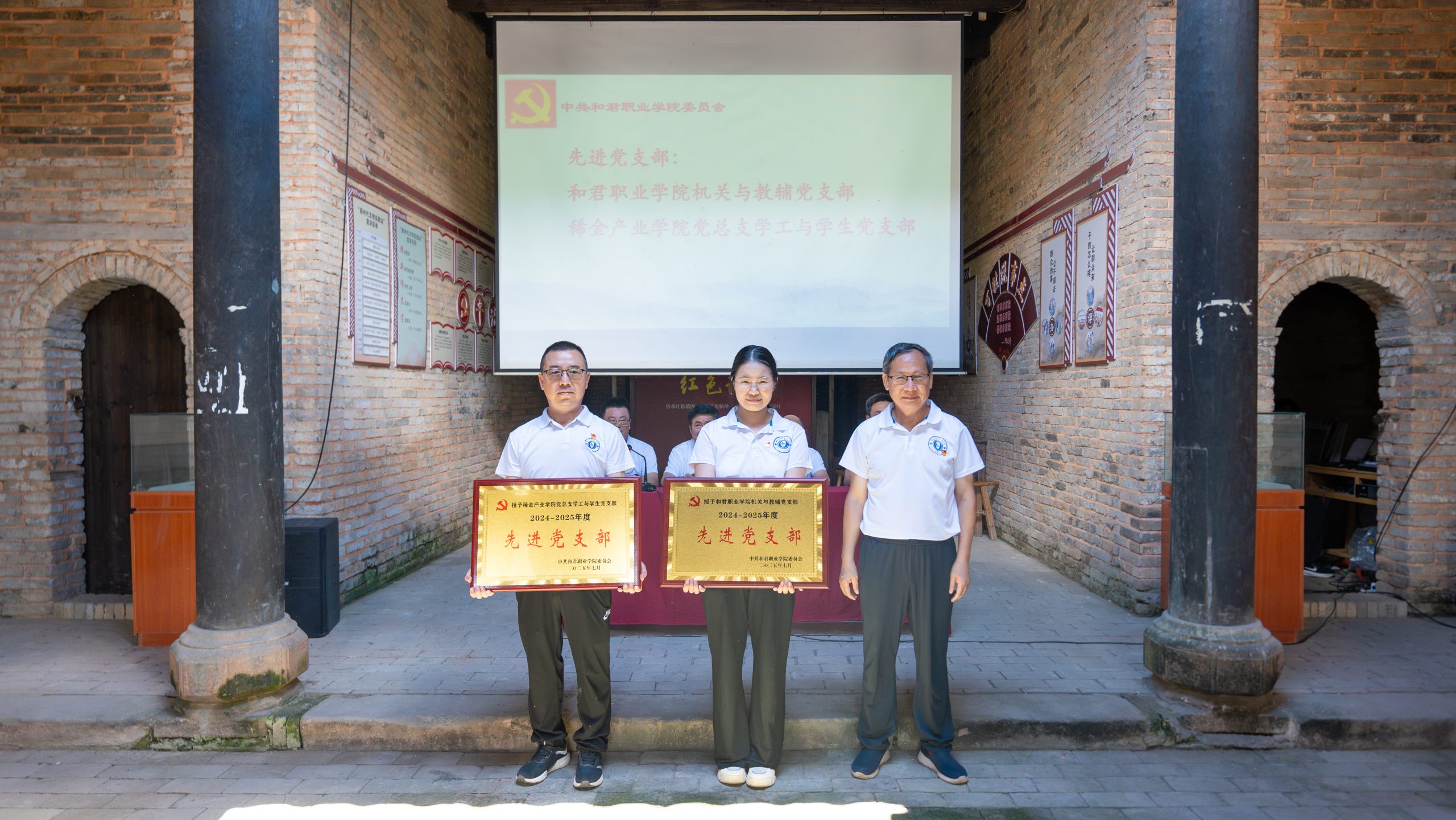 上午11时30分🪛,队伍抵达于都县黄麟乡井塘村。在红色旧址前,老党员重温入党誓词,新接收的预备党员庄严宣誓,铿锵誓言回荡在青山绿水间❤️🔥。中午时分,井塘中央财经委旧址内气氛庄重,”七一”表彰大会在这里举行。校党委委员韩晓军主持大会,党委副书记👩🏿⚖️、校长赖章盛宣读表彰通报,21名优秀共产党员、7名优秀党务工作者、2个先进党支部及10名党员教师联系学生宿舍先进工作者获表彰。党委副书记、理事长李兴为优秀党务工作者颁发荣誉证书🙅🏻♂️。优秀党员代表金群分享了获奖和徒步的感受,预备党员代表谢娇莉表态将以实际行动践行入党誓词🤸🏄🏿♀️。