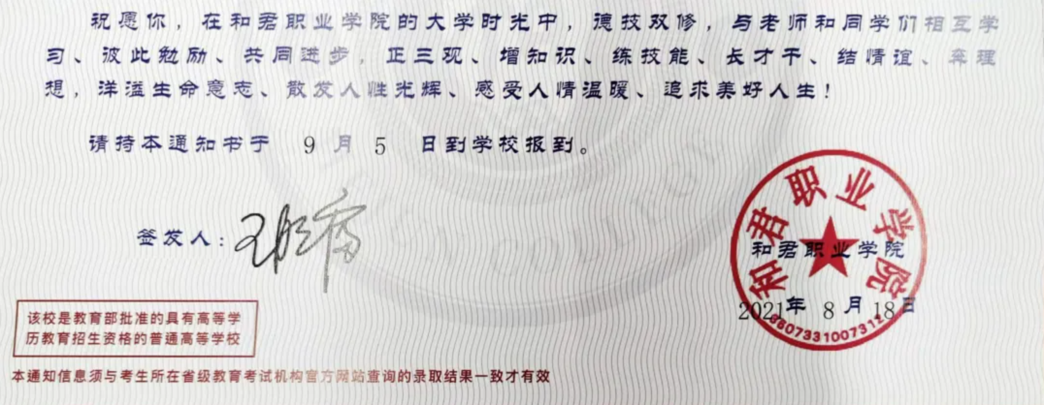 2021彩神xl录取通知书|欢迎奔向更好的自己