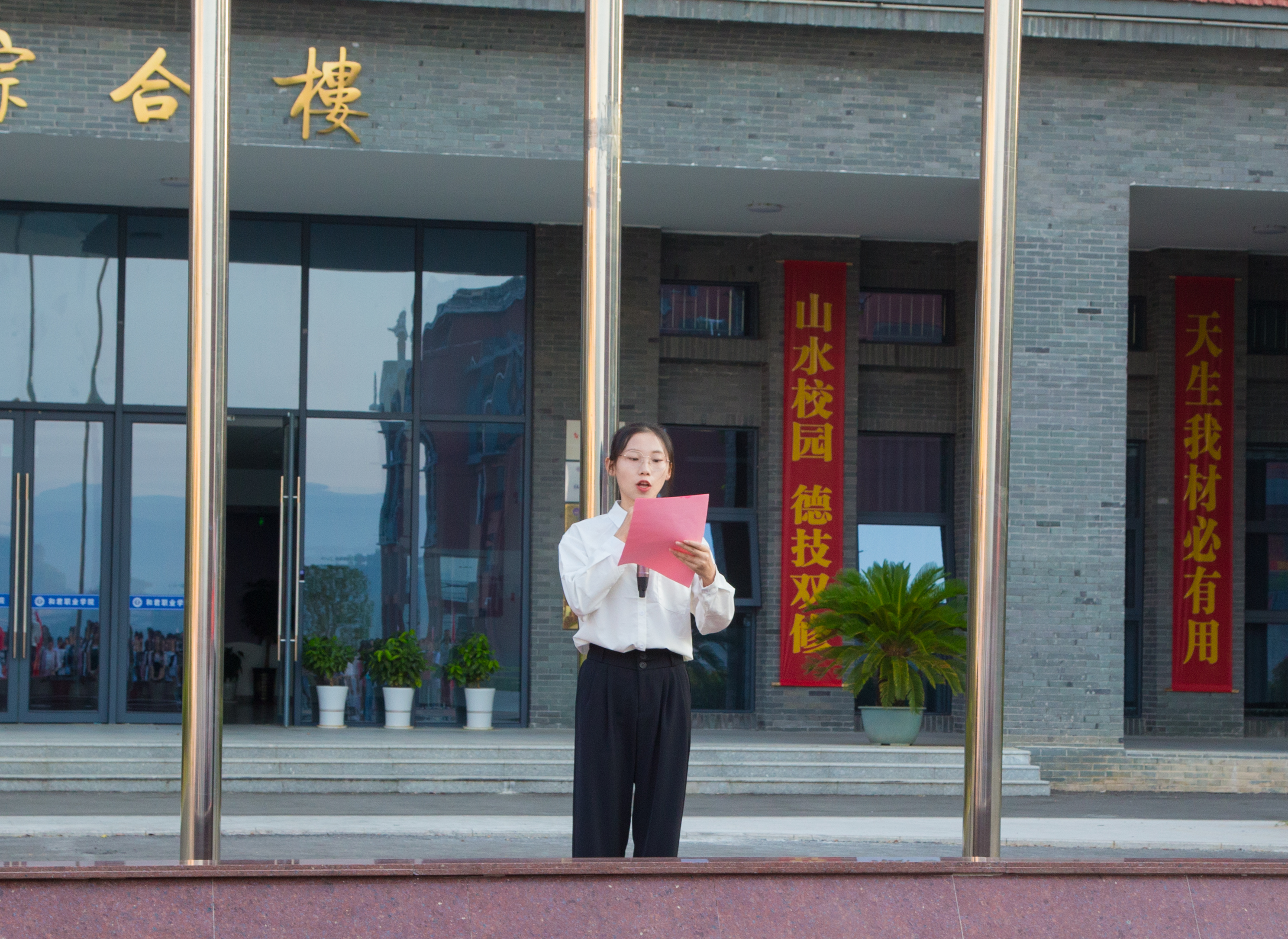 国旗下,佐鑫带领全体同学宣誓🤹🏼♀️:“胸怀祖国,面向世界;好好学习,德技双修👰🏽;请党放心,强国有我”。