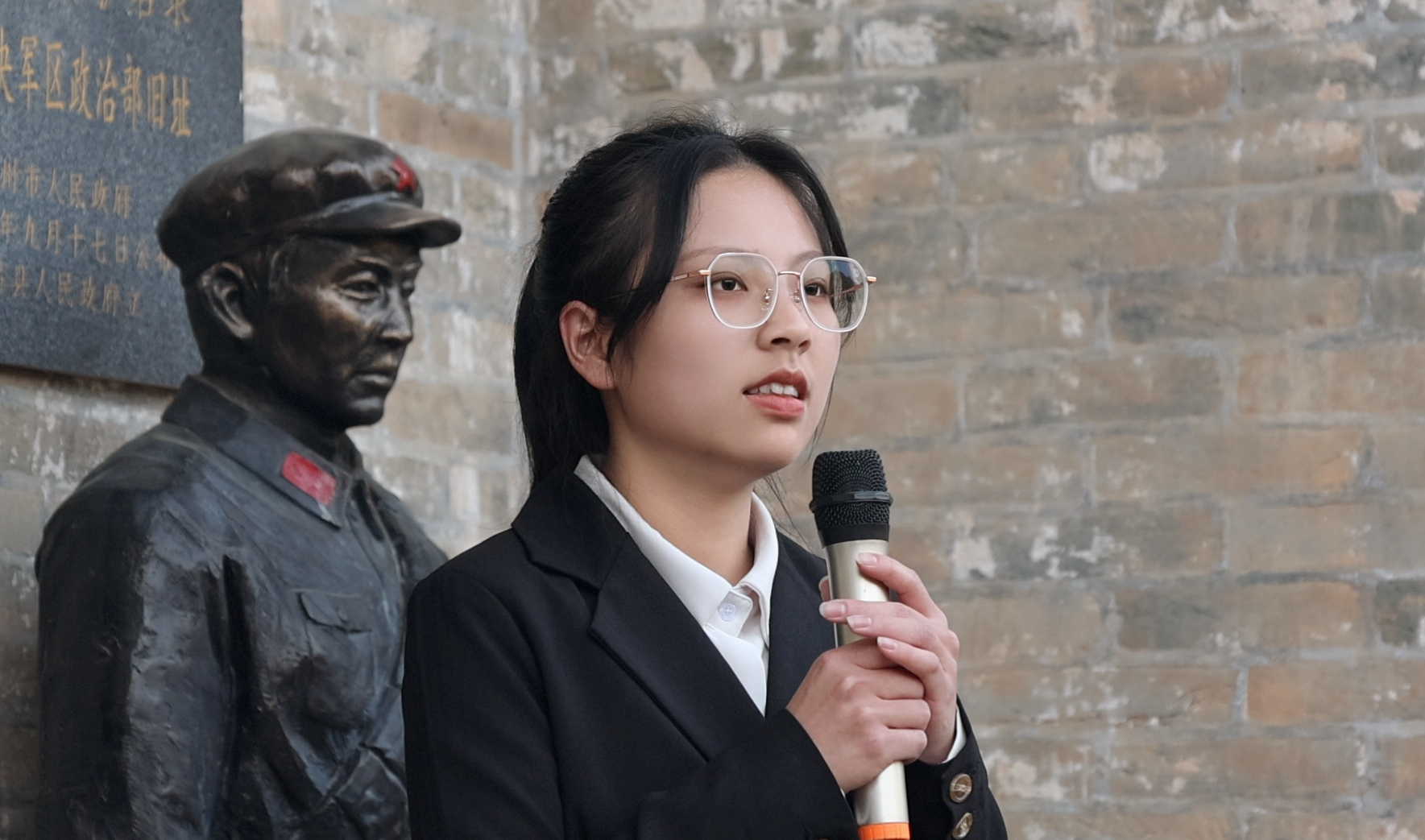 踏着春风🫄🏻🫸🏿,沐浴着春日和煦的阳光🍘。是谁⛹🏻‍♀️?在革命遗址前娓娓道来;是谁🧓🏿?站在那里侧耳聆听;又是谁🕠?同唱一首红歌响彻云霄!