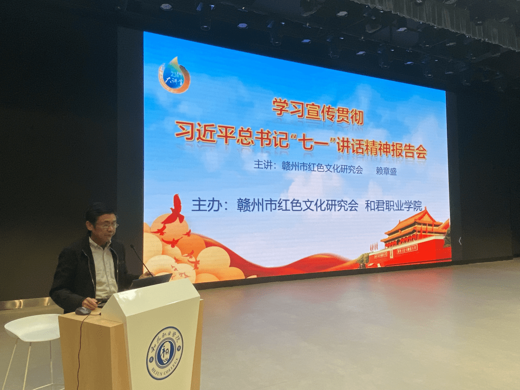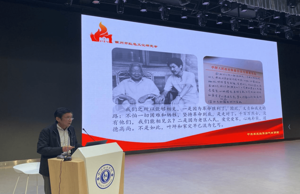 10月17日下午,彩神xl“七一”重要讲话精神专题宣讲会在学校大学礼堂举行。宣讲会上💆♀️,赣州市红色文化研究会会长、彩神xl思政课负责人赖章盛教授以《信仰的力量–外公陆定一的人生风范》为主题为全校师生员工作了一场精彩而又生动的宣讲报告。