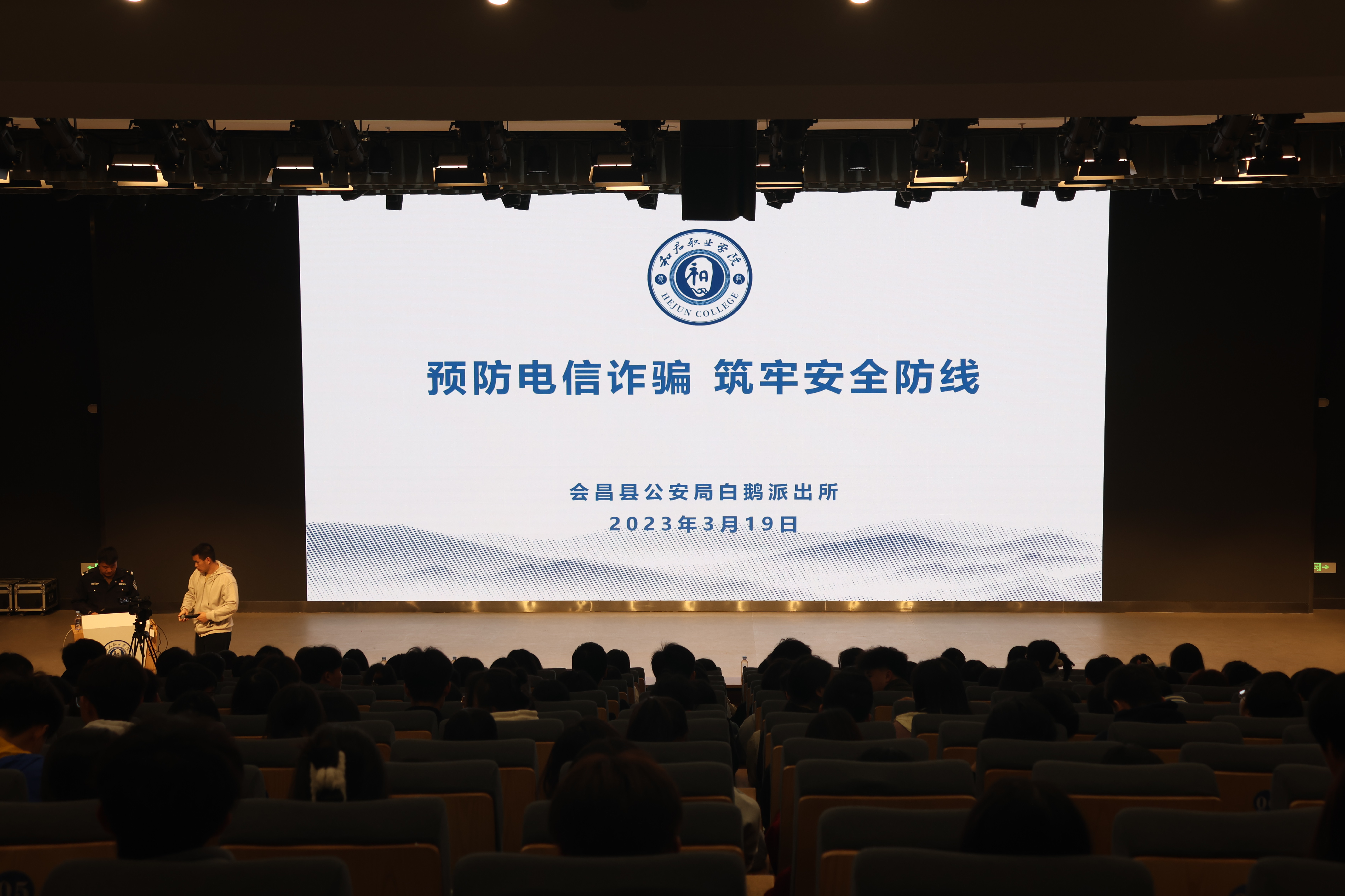 为进一步提升我校学生防范电信网络诈骗意识🧑🏽‍🔬💂🏻,增强学子们对电信网络诈骗犯罪的辨别能力和应对能力,打造平安、和谐校园环境,切实筑牢思想防线,构建“全民反电诈”的良好格局,3月19日晚🧞,会昌县公安局与我校联合在我校大学礼堂举办了一场防诈骗专题讲座。会昌县白鹅乡派出所所长梁润玉受邀为全校师生宣讲👩🏿‍⚕️。