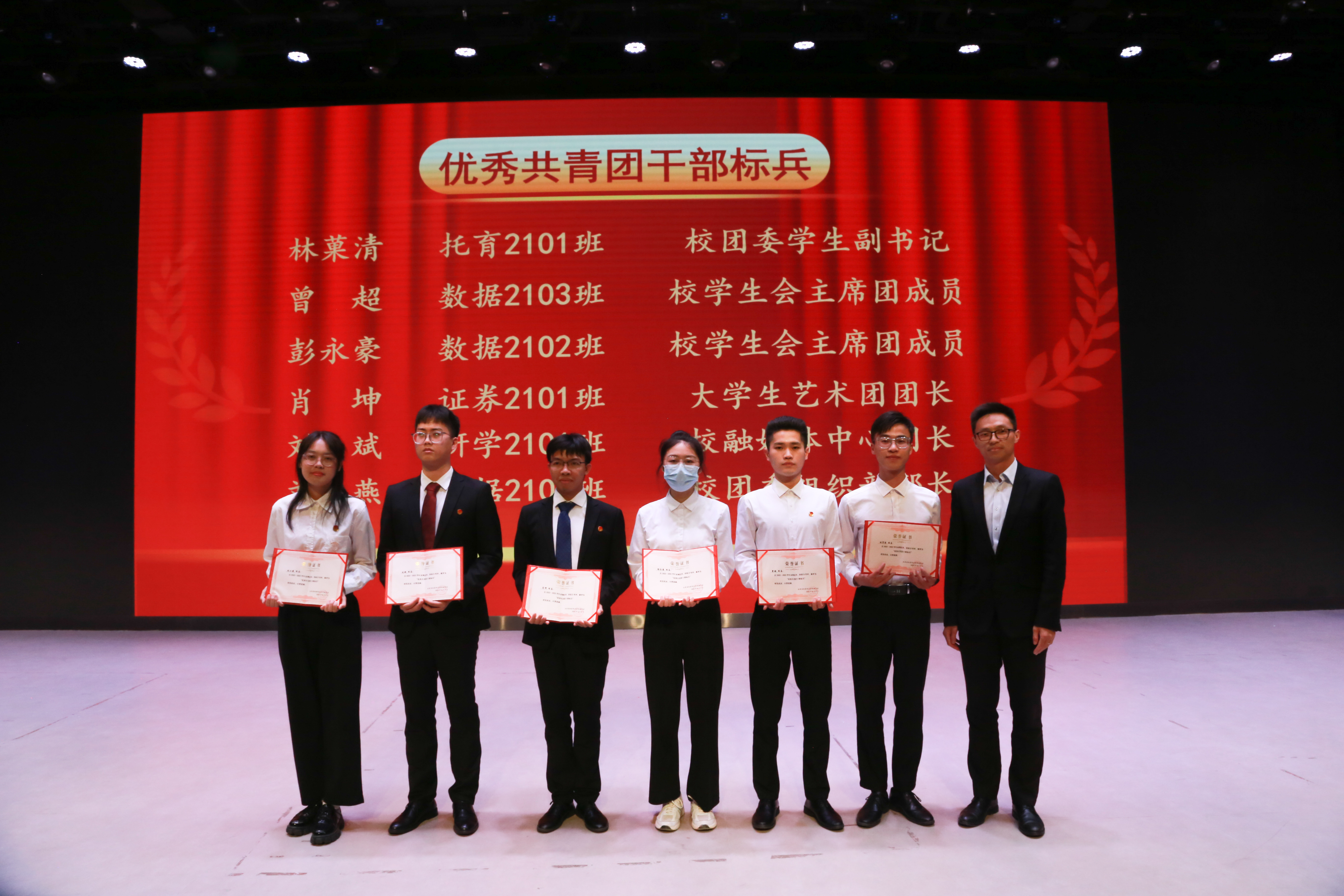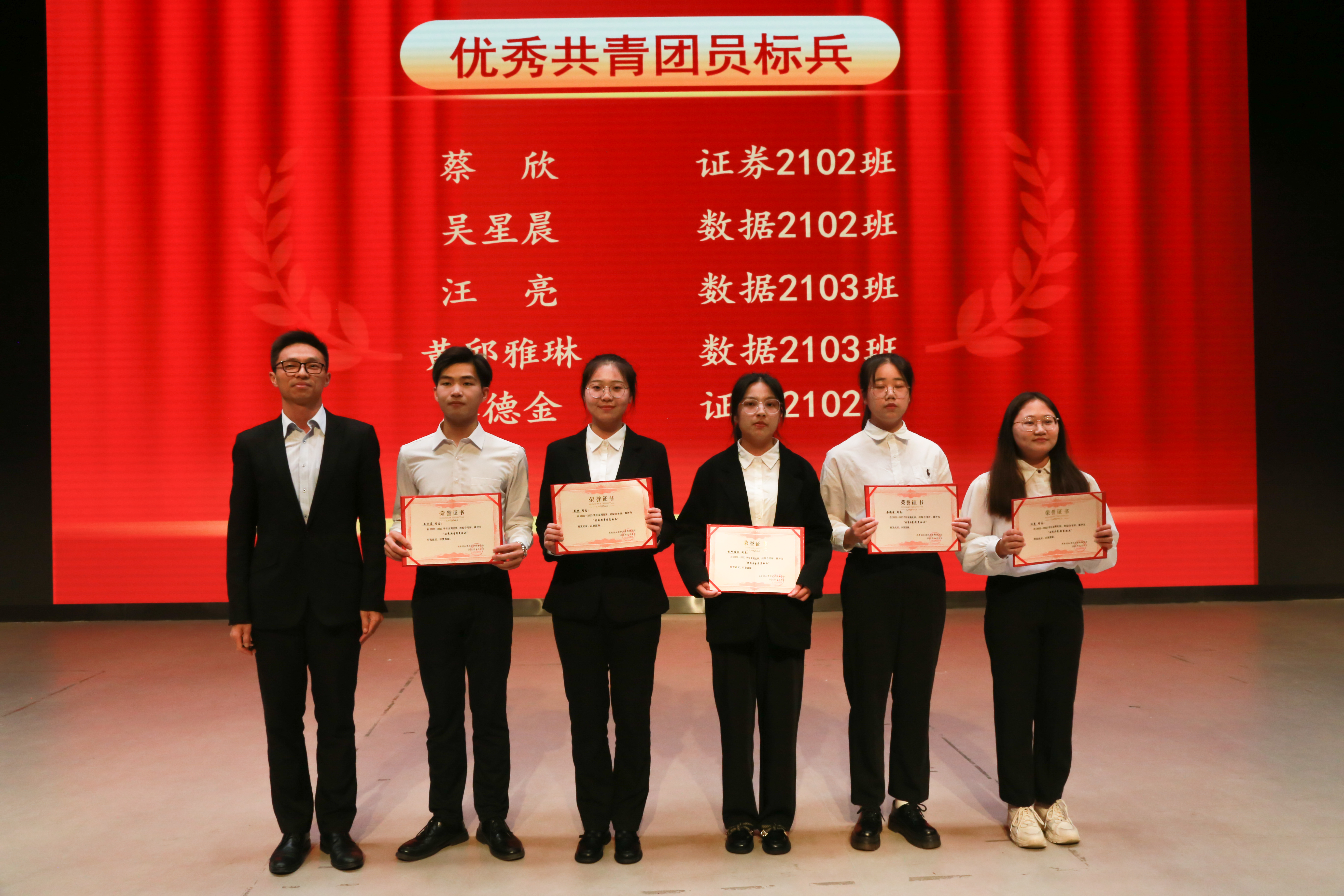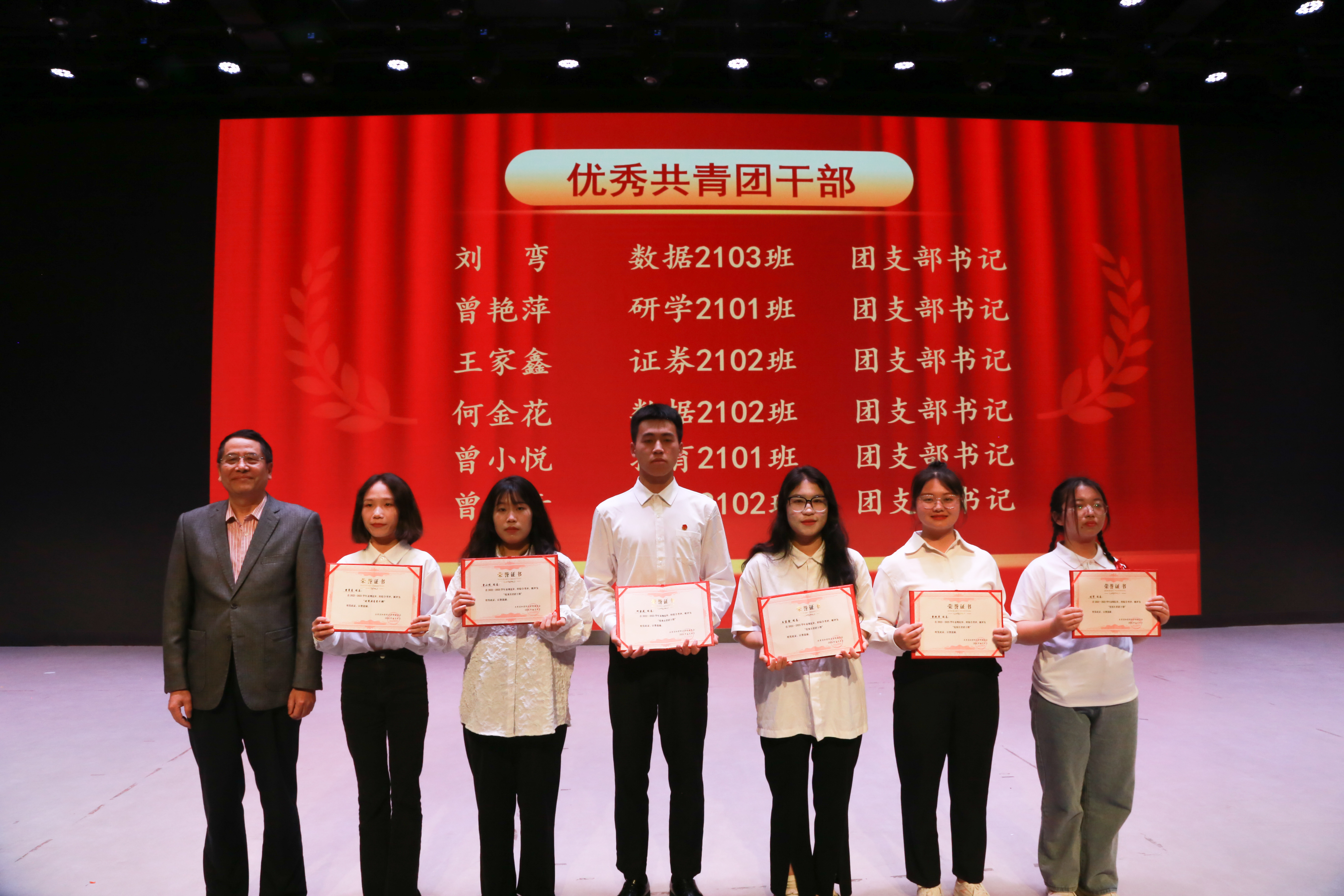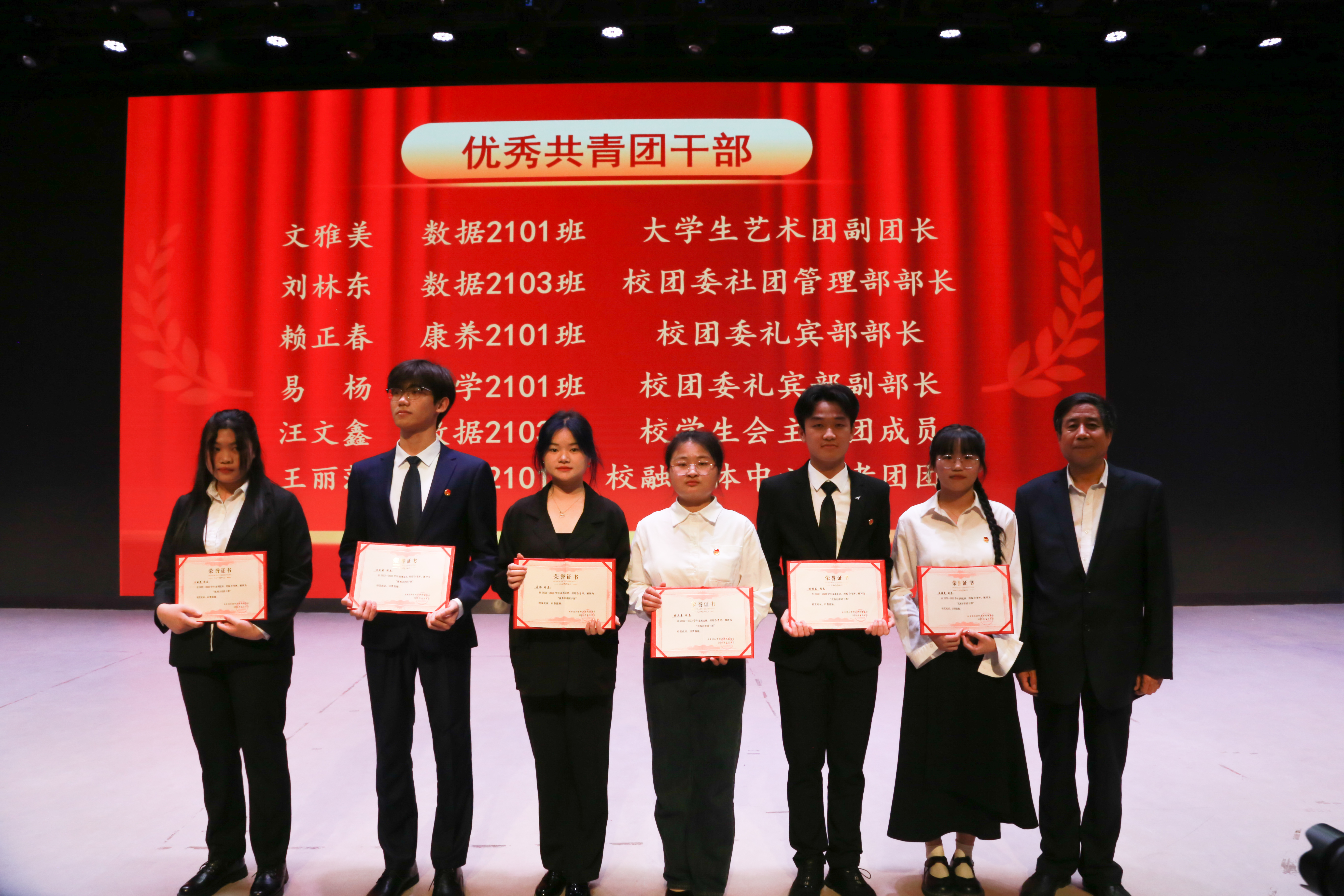 晚会第二篇章为“青春心向党”,通过舞蹈《花腰傣》、歌曲《逆光》、古筝演奏《刀剑如梦》🎅🏻、朗诵《在中国大地上报道》、歌曲《唱支山歌给党听》等才艺表演,充分展现了和君学子勇于创新、团结协作的精神风貌🧒🏿。党委副书记、执行校长李兴𓀍,副校长王宗庆🈺、人事处长汪业军为优秀共青团干部标兵🫀👍🏼、优秀共青团干部颁奖🧑‍🤝‍🧑。