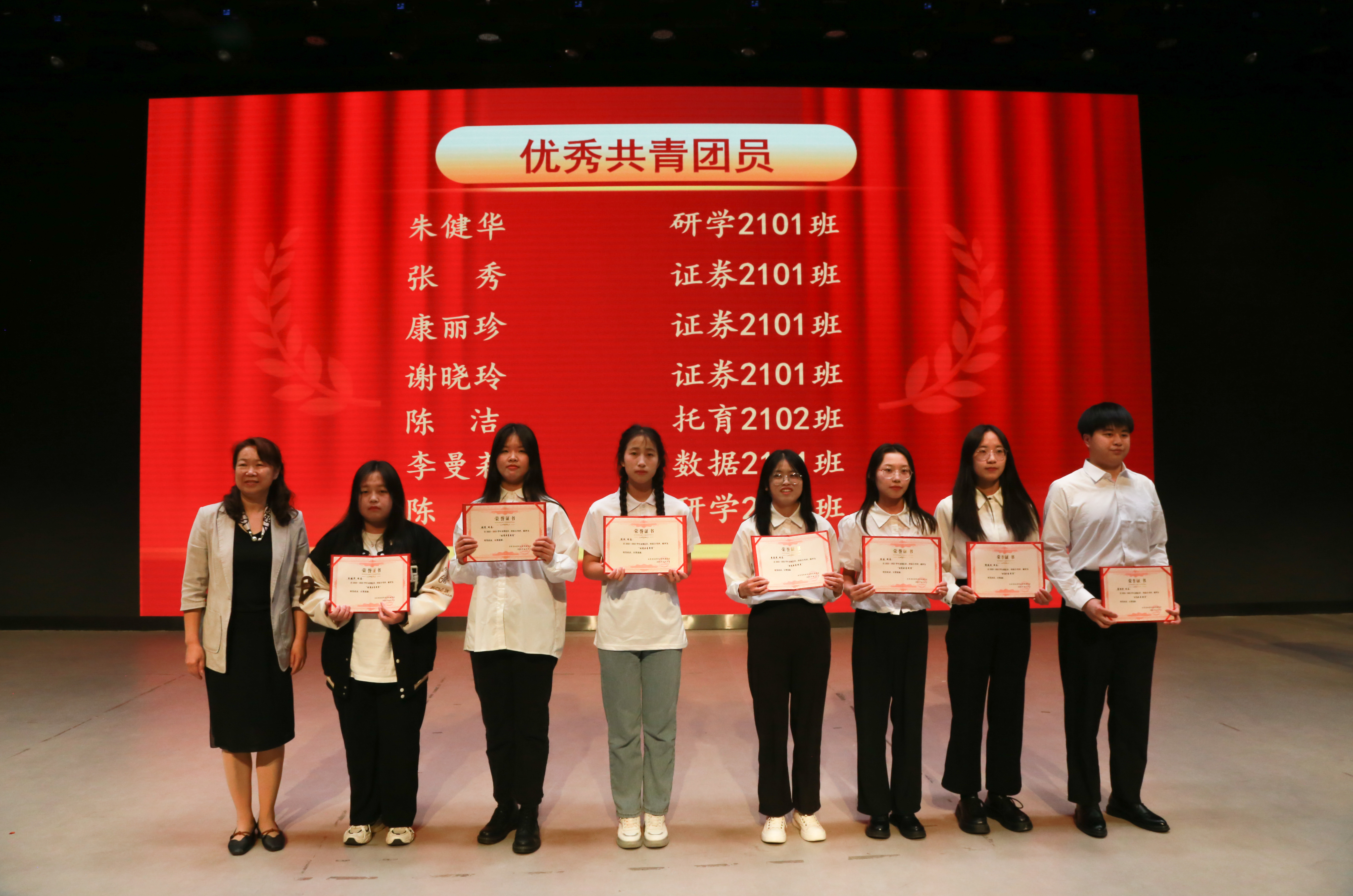 晚会由朝气蓬勃的热舞表演《siren》拉开序幕。晚会第一篇章为“悟思百年史”🦹🏿,在歌伴舞《知否知否》、情景剧《觉醒年代》😤、舞蹈《青玉案·元夕》🦻、大合唱《没有共产党就没有新中国》等节目表演结束后,校团委书记韩晓军宣读了《关于表彰2022-2023年度“五四先进集体”和“五四先进个人”的通报》,党委副书记🔟、执行校长李兴🧖,副校长丁立梅、副校长助理赵延兵、后勤处长潘建清、学工副处长邹记龙、党政办副主任王继东为优秀共青团员标兵、优秀共青团员、优秀志愿者进行颁奖。