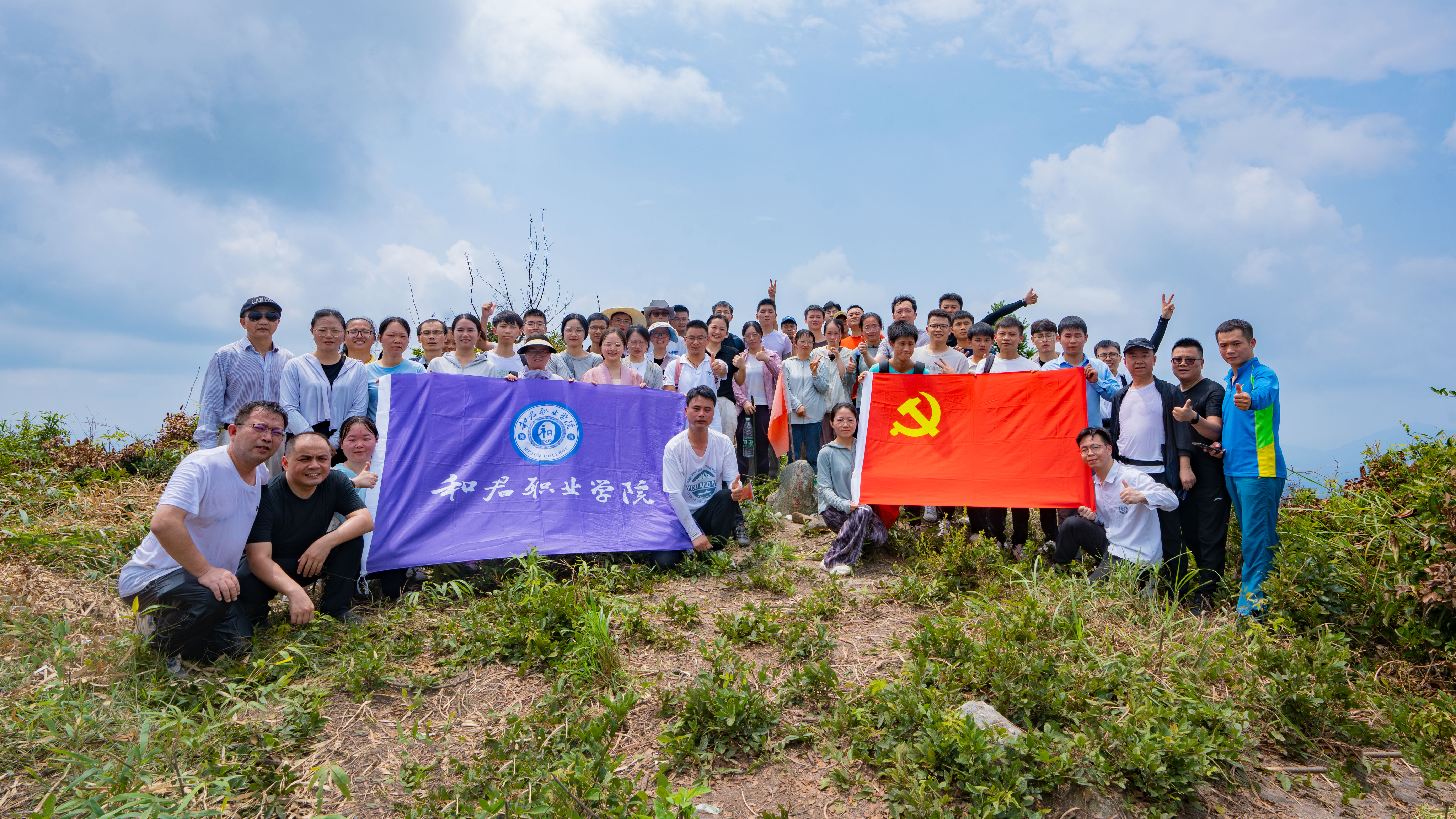长久地坐在讲堂里听课难免会有些枯燥,学校为此特意在十天培训期的第六天安排了室外素质拓展训练。8月20日早7点,71名新同事带着自备干粮🥄💪🏿、瓶装水兴致勃勃地踏上了征程🧑🏿🍼🧑🏼🌾。大家从学校走到学术活动中心三度书院🍟,稍作休息又向三度峰攀登🥰,一路上虽然会有体弱的同事掉队5️⃣,但在大家的互相帮助和鼓舞下,都陆续登上了三度峰🧘,胜利的歌声久久地在三度峰回荡。