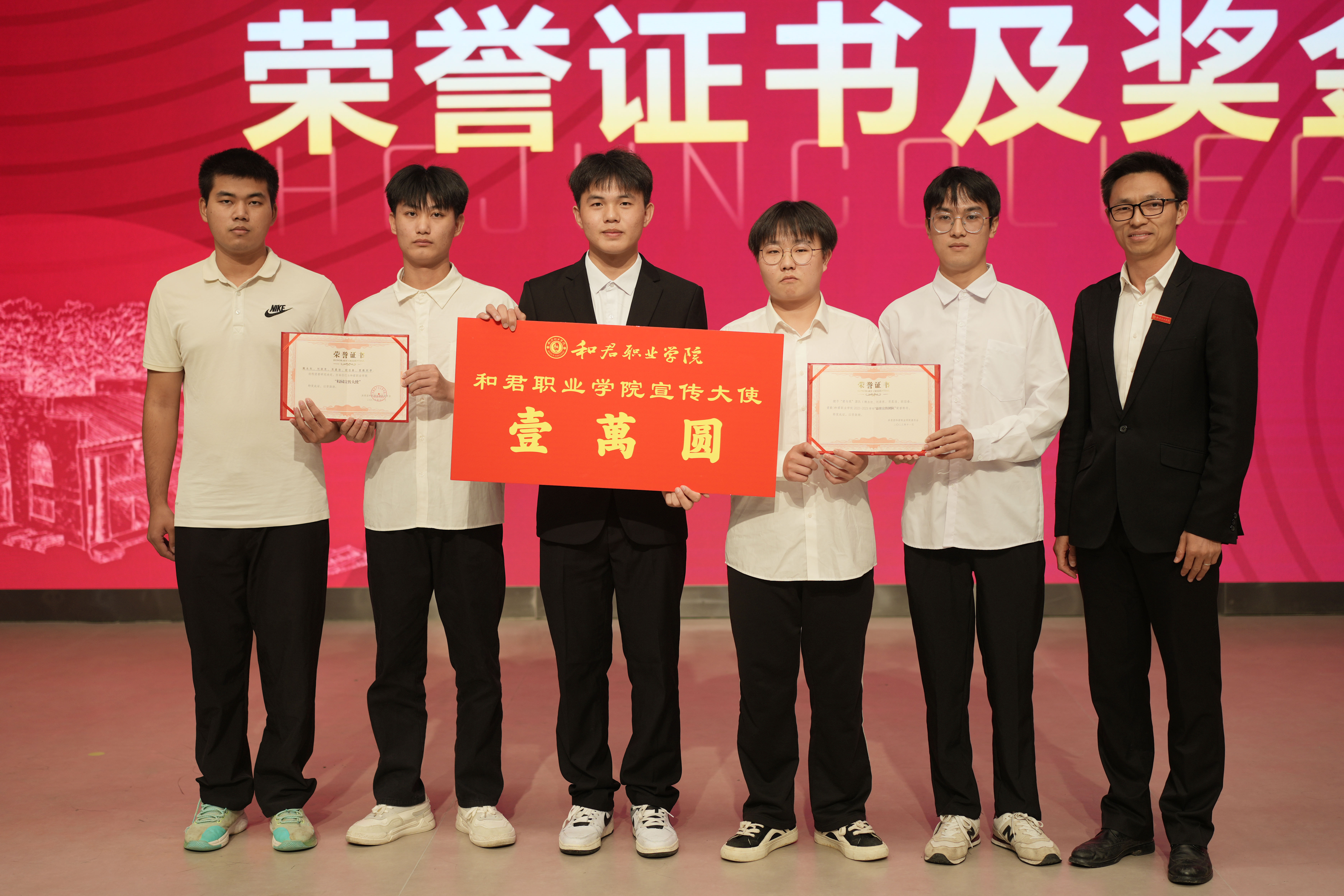 接着👼🏻,党委副书记李兴为蝉联两届短视频大赛总冠军的“君与我”团队颁发了“彩神xl宣传大使”的正式聘书👨‍🚒👩🏿‍🚀,并颁发荣誉证书和丰厚的奖金,以鼓励他们为学校宣传作出更大的贡献。