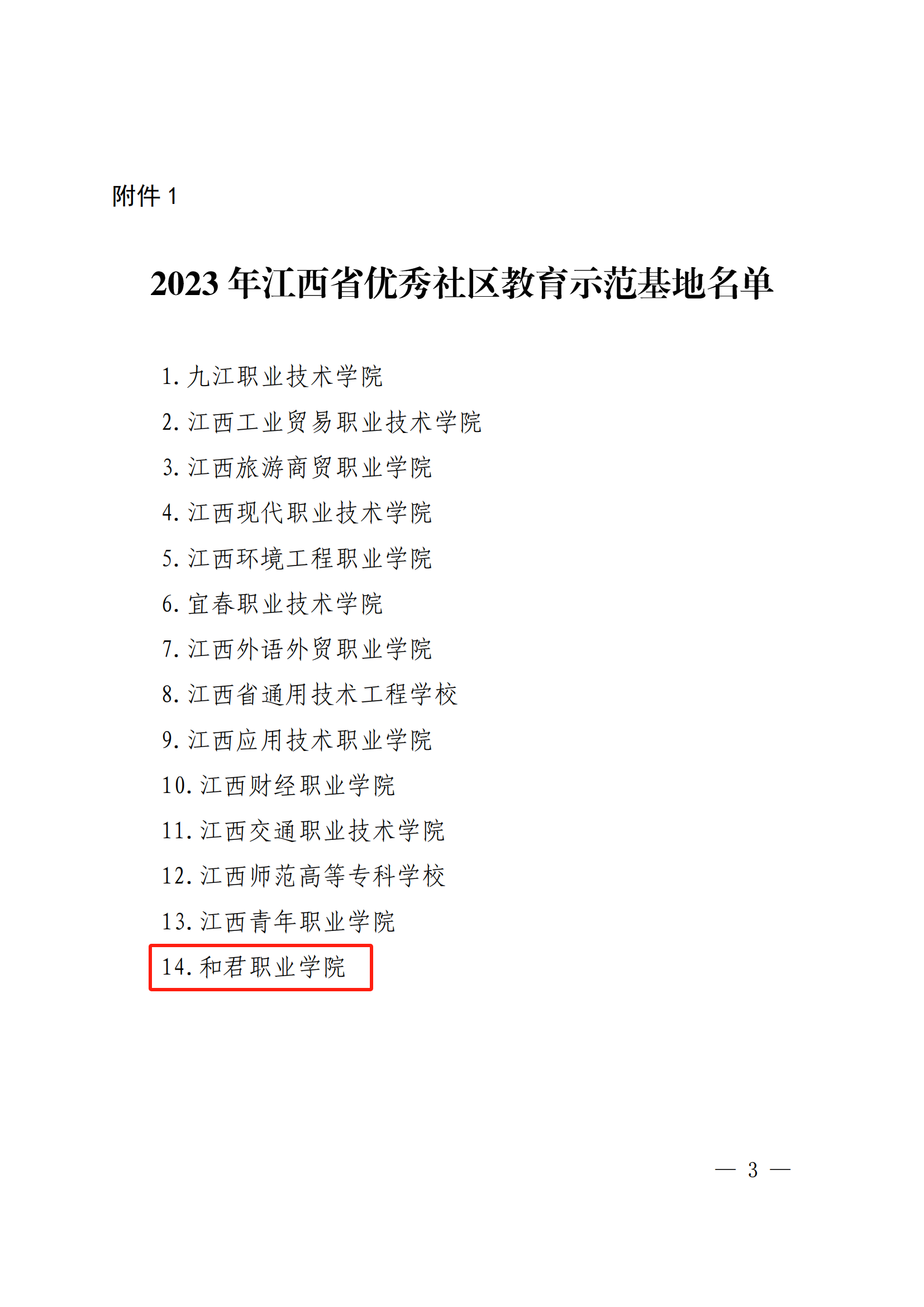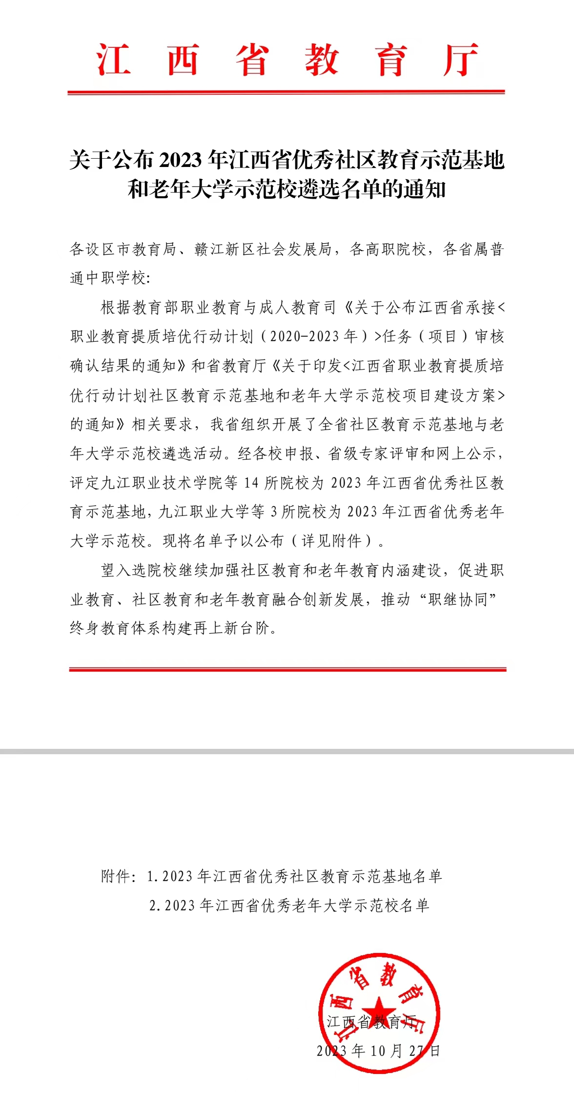 喜报丨我校被评定为2023 年江西省优秀社区教育示范基地喜报丨我校被评定为2023 年江西省优秀社区教育示范基地
