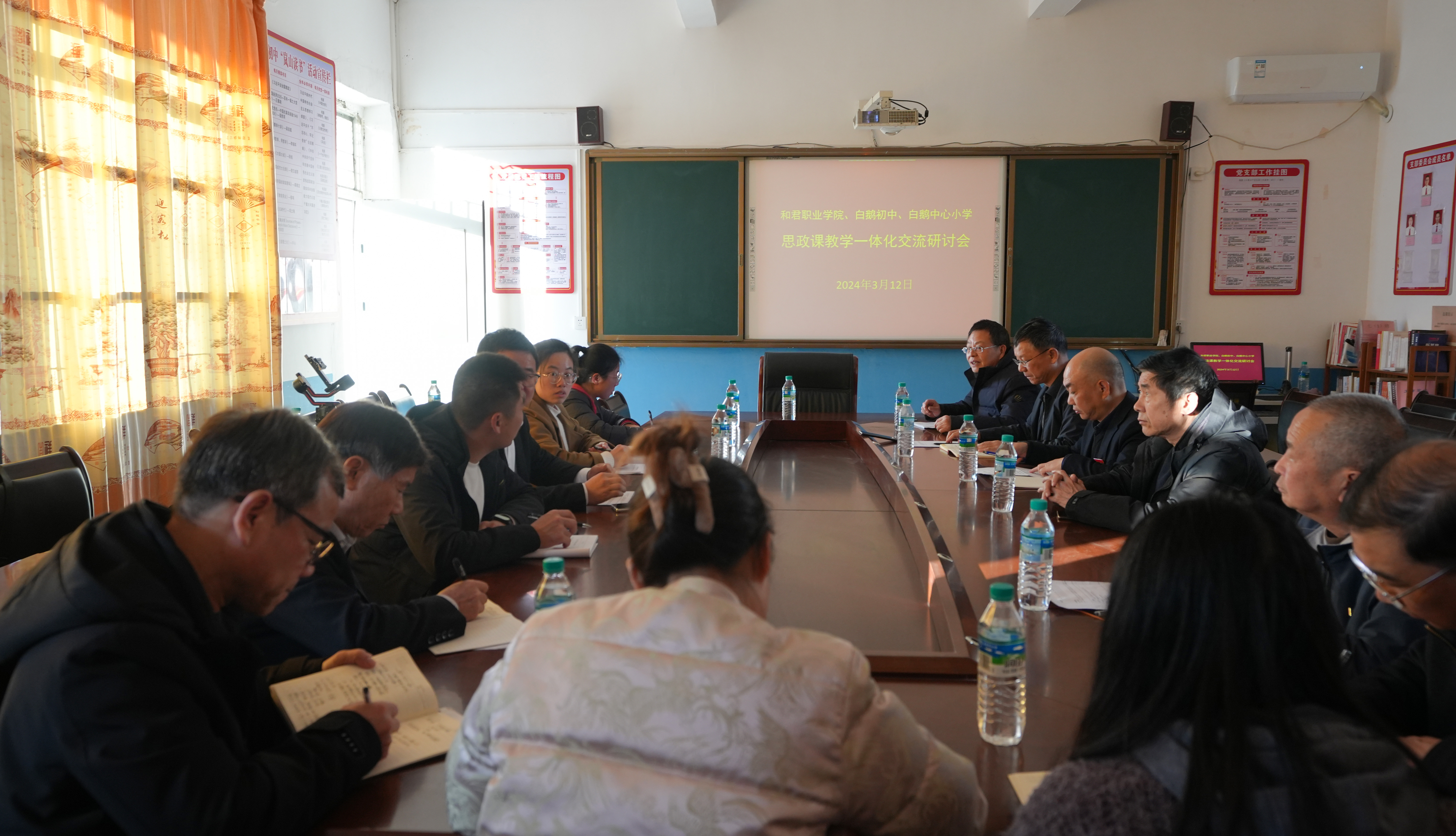 3月12日下午🦶🏼,我校思政课教师一行在会昌县白鹅初中🥧,与该校和白鹅中心小学的思政课教师开展“大中小学思政课教学一体化”教研活动。我校党委书记王德平🦹♂️、校长赖章盛、党委委员刘冬春参加。
