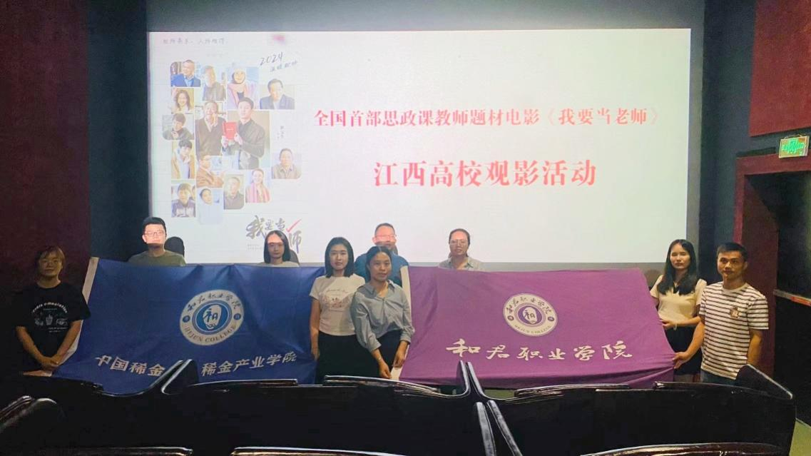 为重温习近平总书记“3·18”重要讲话精神,根据江西省教育厅安排👩🏽🦲,5月10日下午🚵♀️,我校稀金产业学院组织思政教师代表前往影院🐌,集体观看全国首部思政课教师题材影片《我要当老师》。