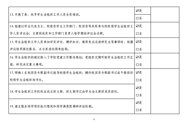 为落实共青团中央🫠、教育部、全国学联联合下发的《关于推动高校学生会(研究生会)深化改革的若干意见》🌅,并结合《关于巩固高校学生会(研究生会)改革成果的若干措施》文件要求💼👩🏿‍🍳,我共青团认真对照相关内容和工作要求展开自工作♐️,自评情况如下。