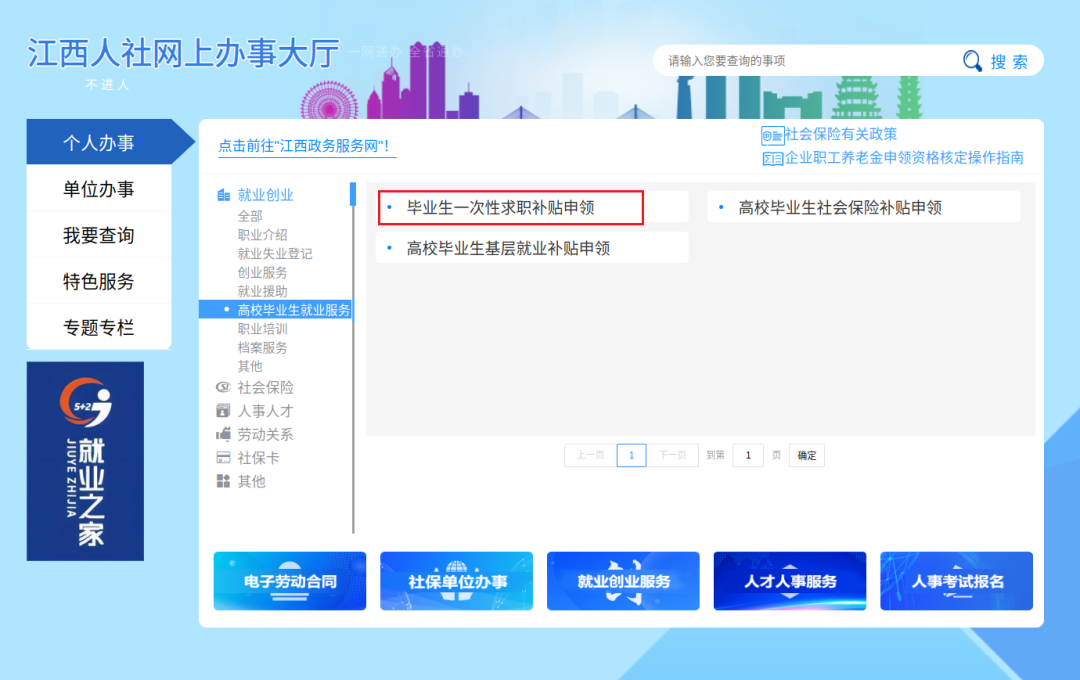 2.进入赣服通APP→部门专区→“人社专区”→我要补贴→毕业生一次性求职补贴申领。