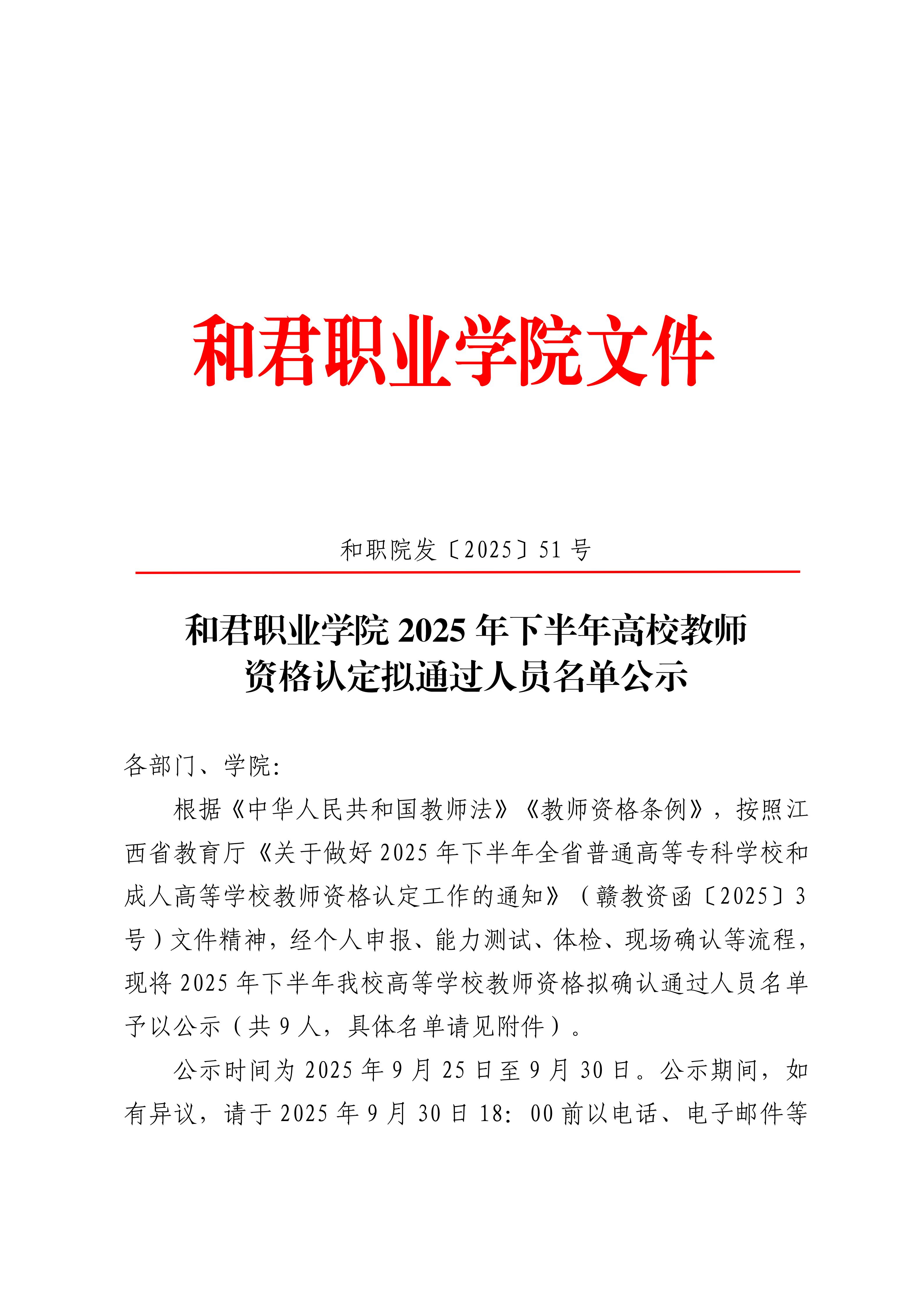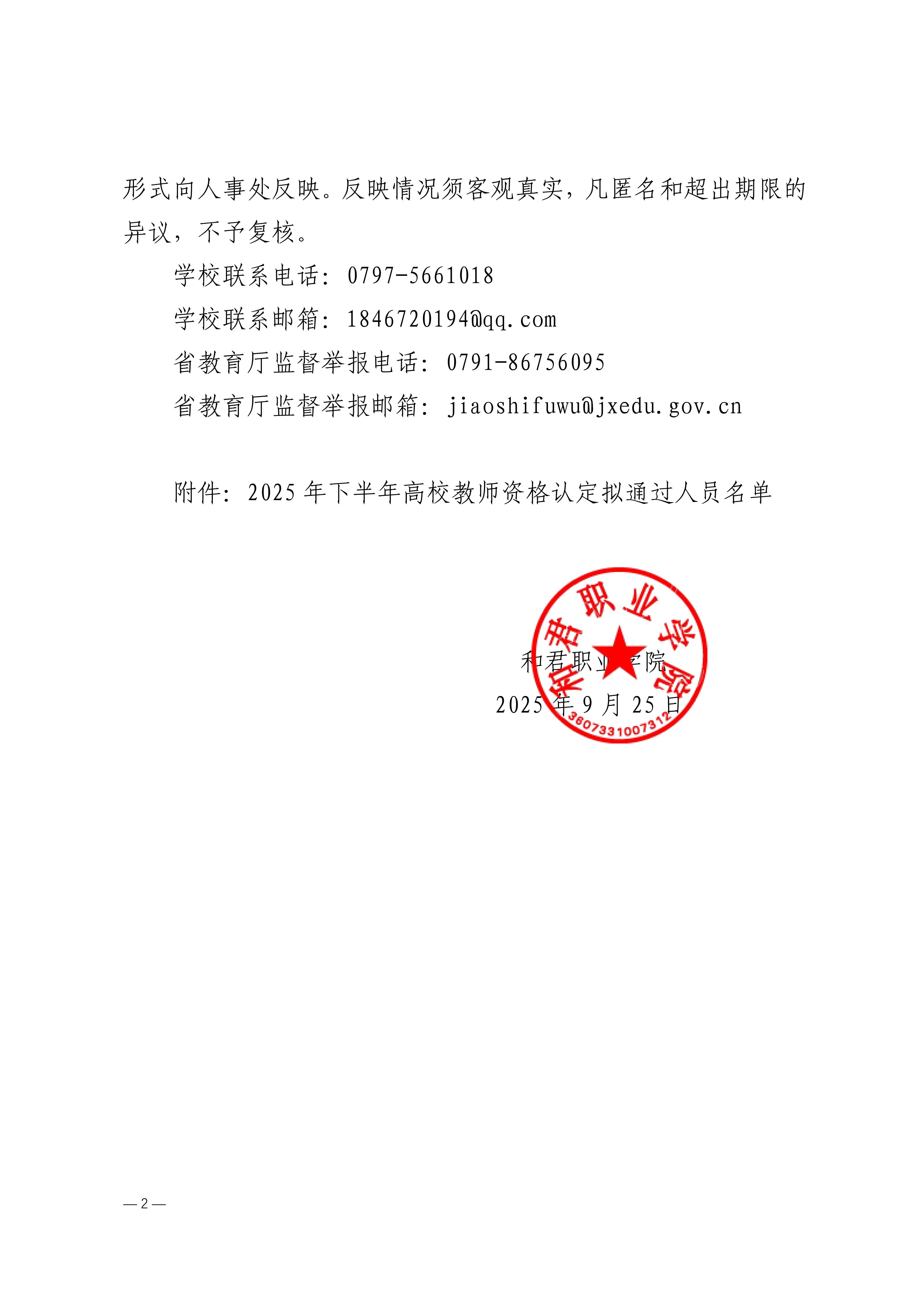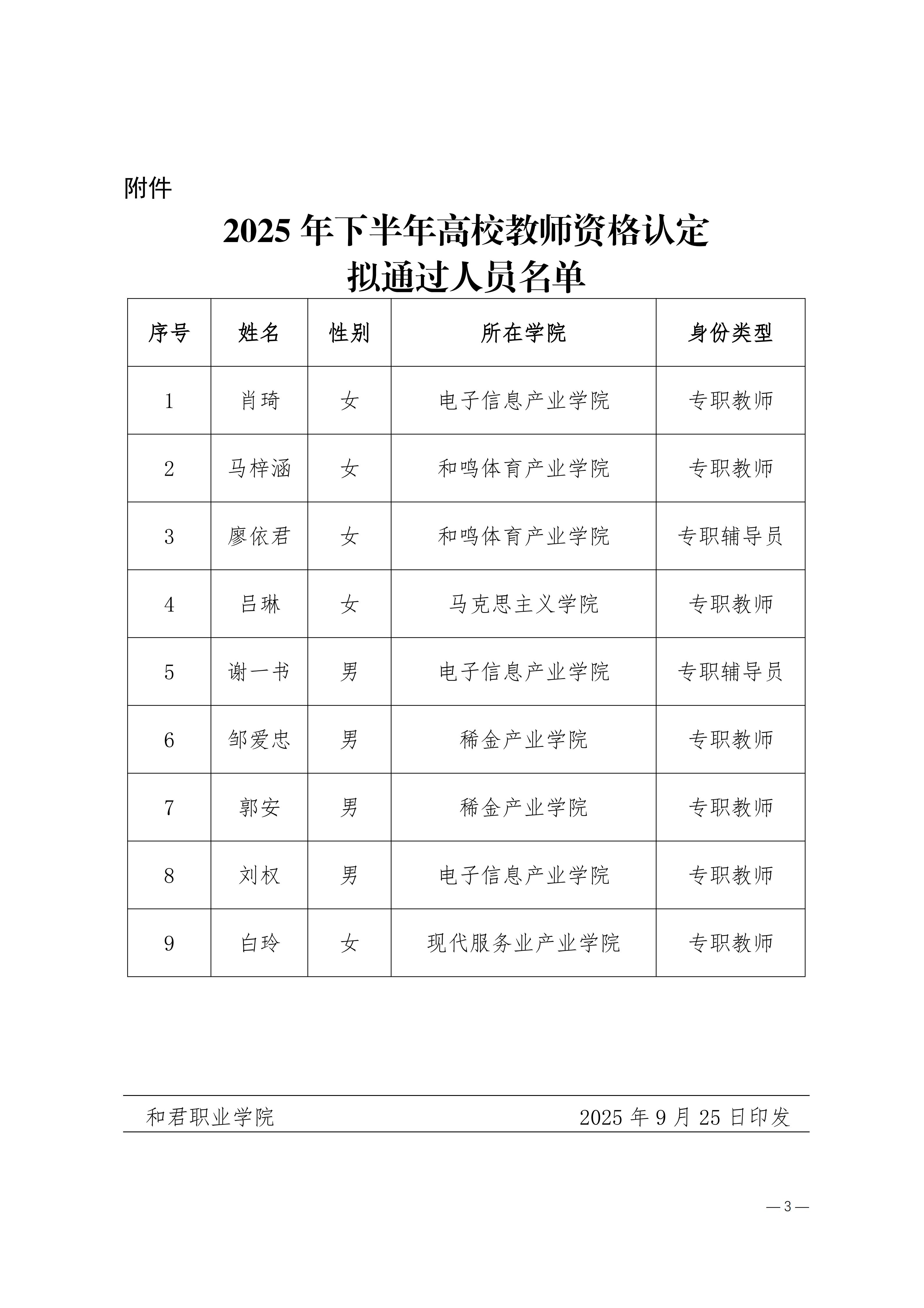 彩神xl 2025 年下半年高校教师 资格认定拟通过人员名单公示