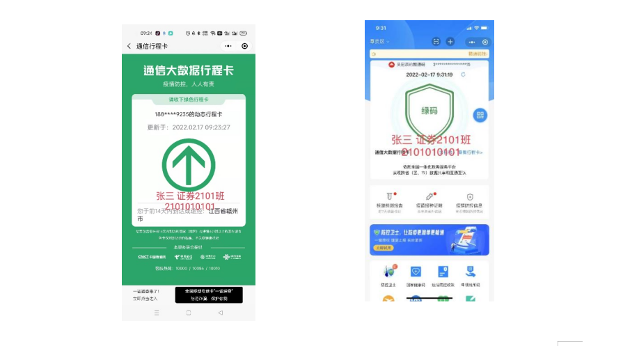 2月20日当天来校前🧜🏻,学生凭赣通码“绿码”和通信大数据行程卡“绿码” (通过微信小程序,搜索 “赣通码”即可申领𓀔,以下简称“双绿码”),截图(备注:班级+姓名+学号)提交至辅导员处审批👩👦。