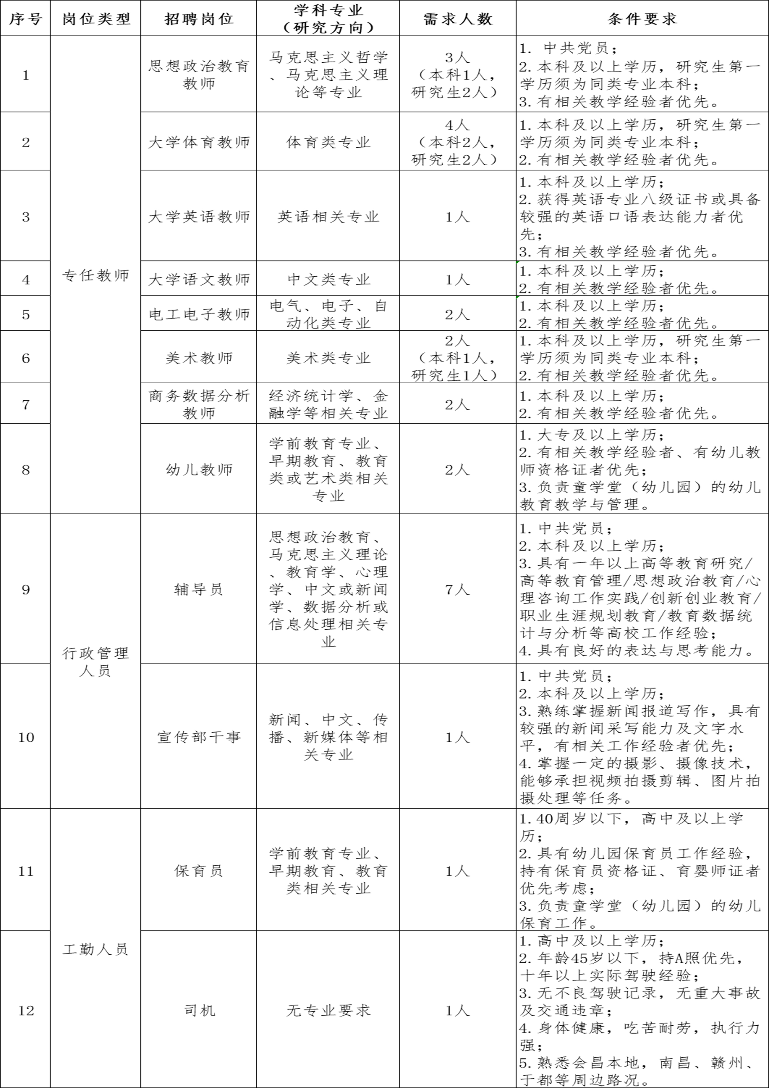 一、招聘岗位及要求