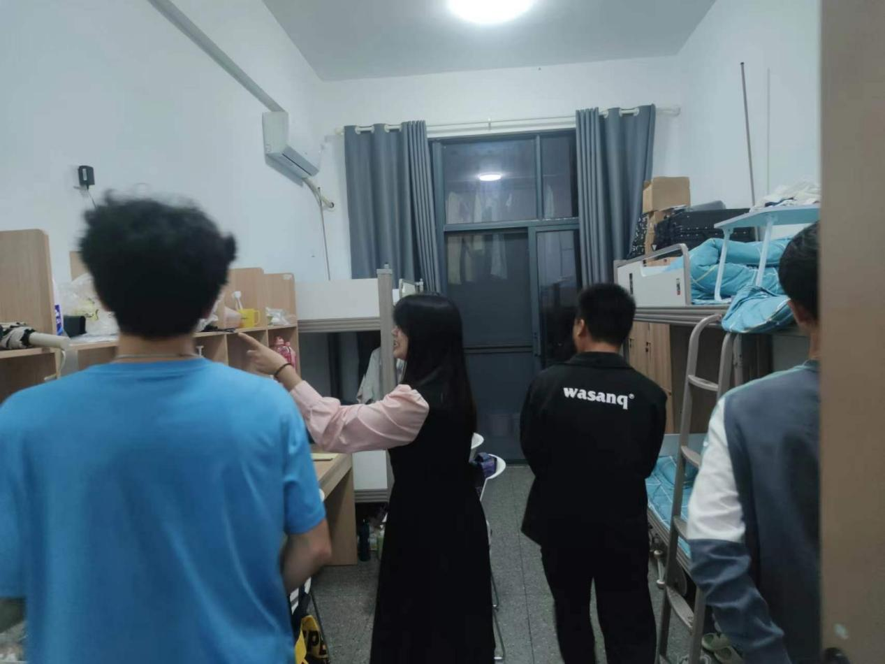 为加强校园安全稳定🌌、维护良好的校园秩序、了解学生们宿舍问题和加强同学们的安全意识🫧,同时了解学生们周末返校情况,学工处全体辅导员在王宗庆副校长、邹记龙副处长的带领和指导下👩👧👧,于10月15日晚深入学生宿舍🫷🏼,传递关心和问候🙆♀️、排查宿舍安全隐患、营造良好的宿舍卫生情况。