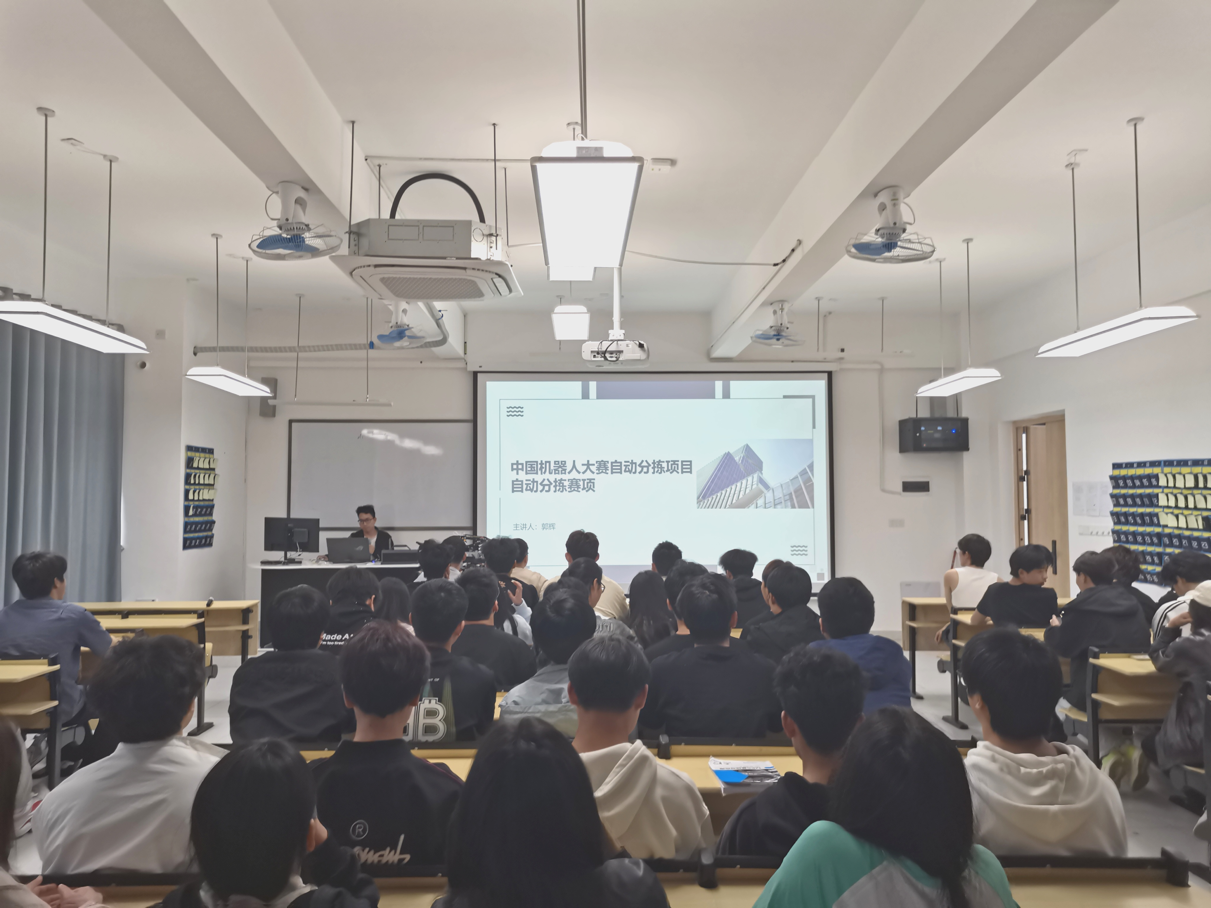 讲座中☠️,郭辉老师从参赛队伍建设的角度阐述了如何来组建一支机器人队伍🌈,如何对不同类别的机器人进行机械结构进行设计与制作。随后,结合国赛相关规则,将理论与实践相结合的理念贯穿讲座当中,激发学生的求知欲、探索欲,现场引发学生的热烈讨论。